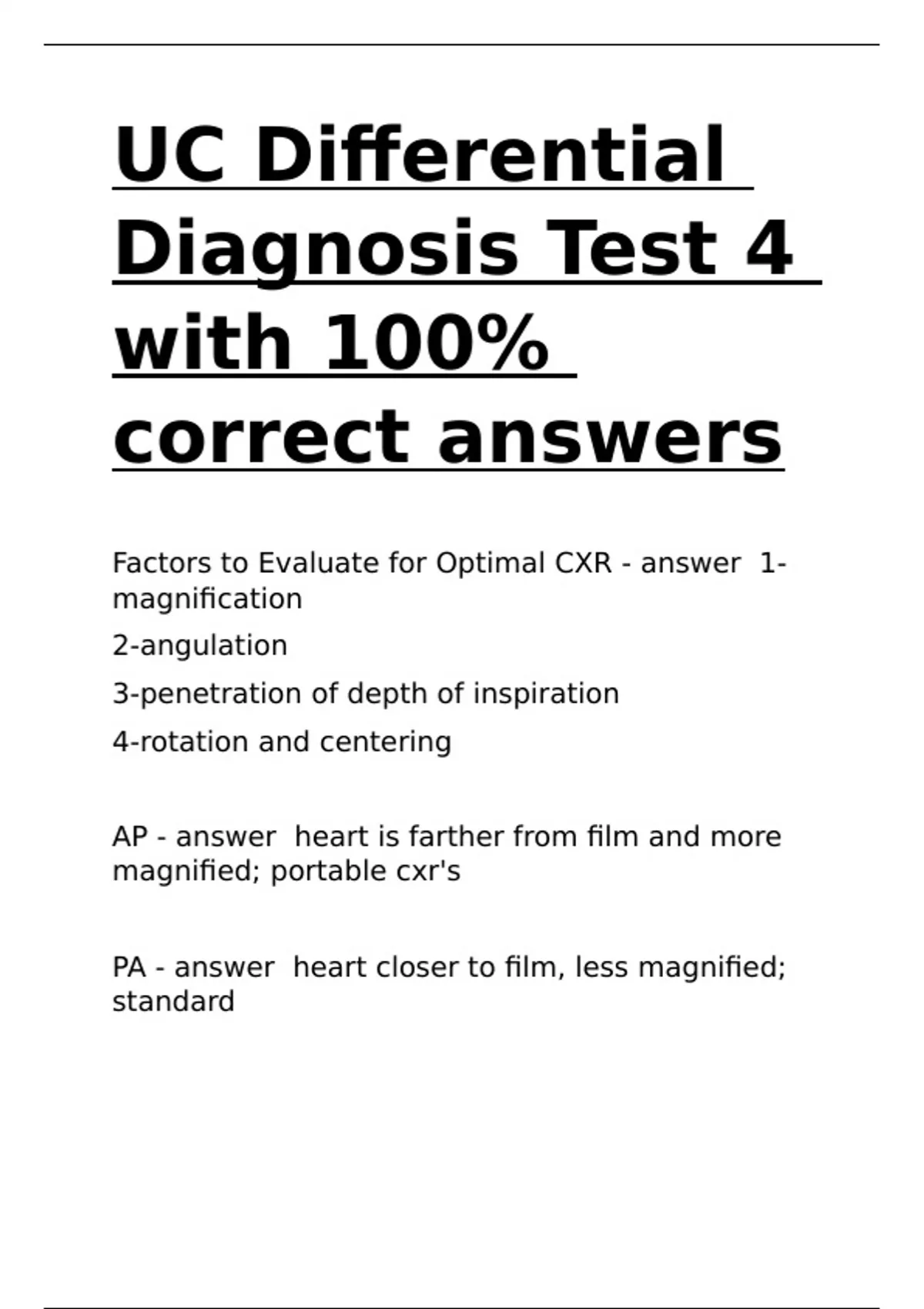Factors to Evaluate for Optimal CXR - answer 1-