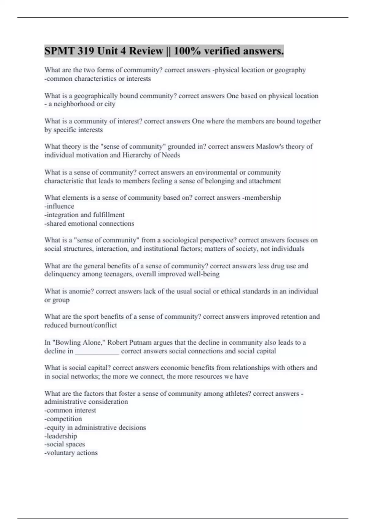 SPMT 319 Unit 4 Review || 100% verified answers.