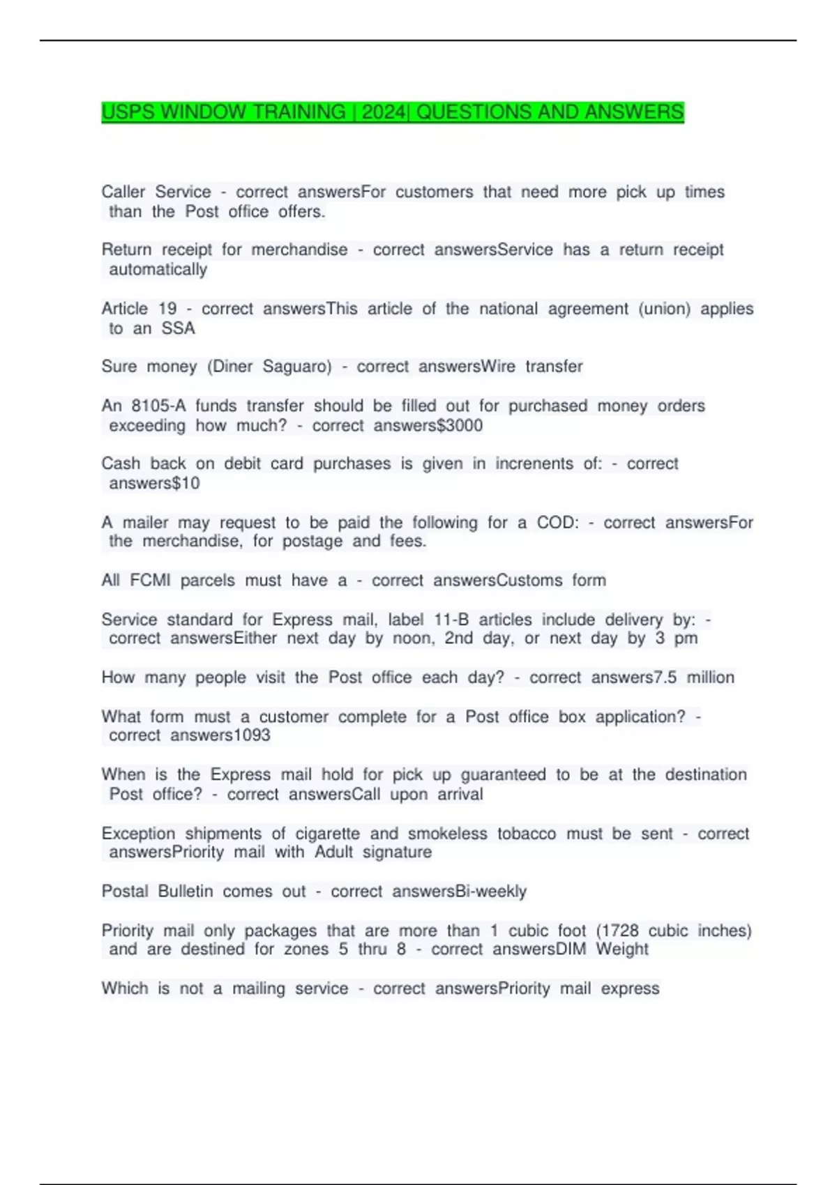 A qqmailer qqmay qqrequest qqto qqbe qqpaid qqthe qqfollowing qqfor qqa qqCOD: qq- qqcorrect qqanswersFor