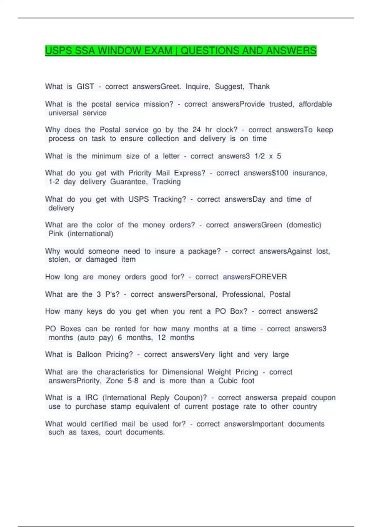 USPS SSA WINDOW EXAM | QUESTIONS AND ANSWERS