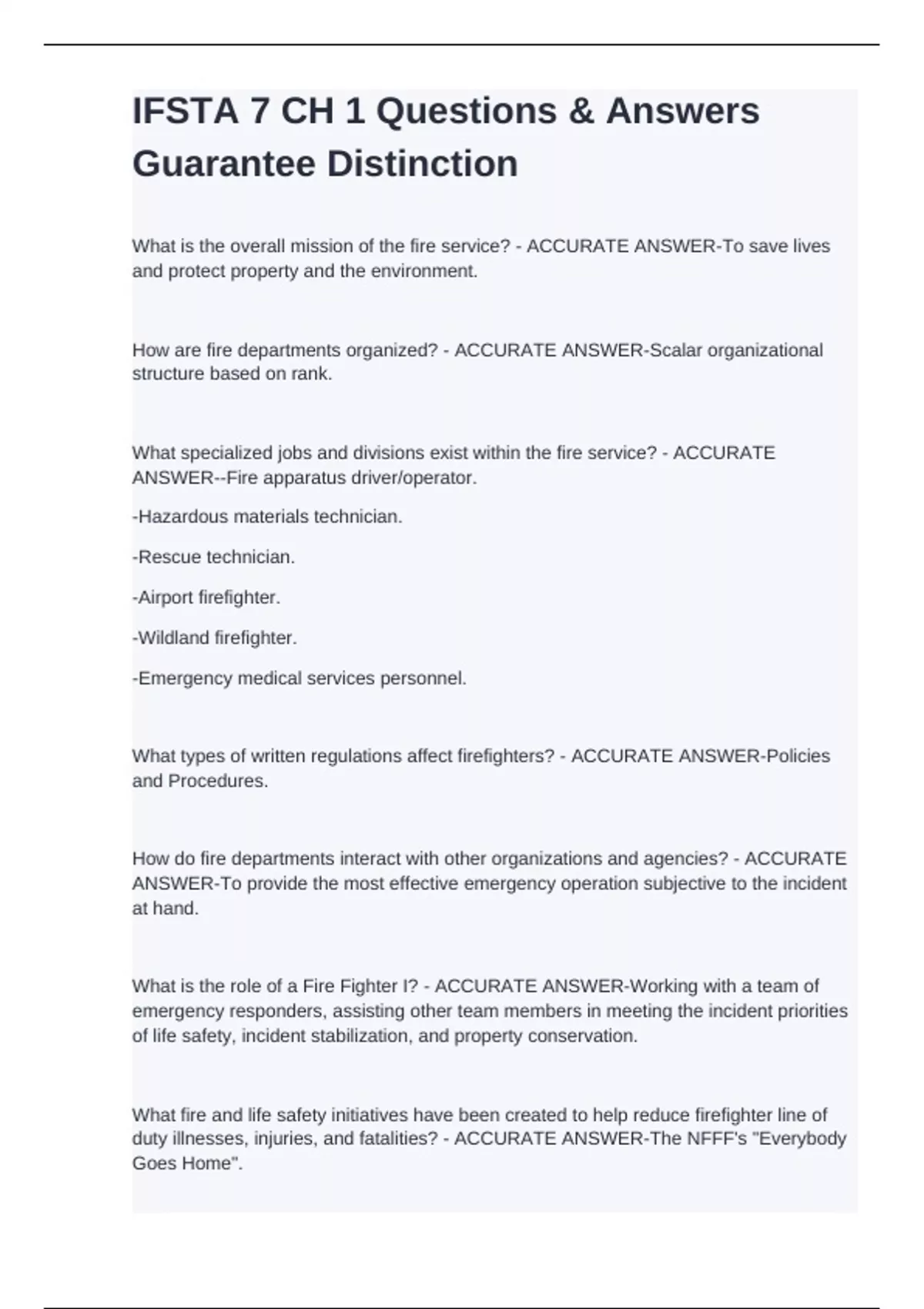 What is the overall mission of the fire service? - ACCURATE ANSWER-To save lives