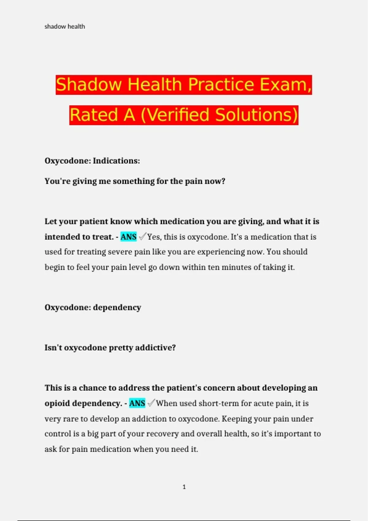 intended to treat. - ANS ✔Yes, this is oxycodone. It's a medication that is