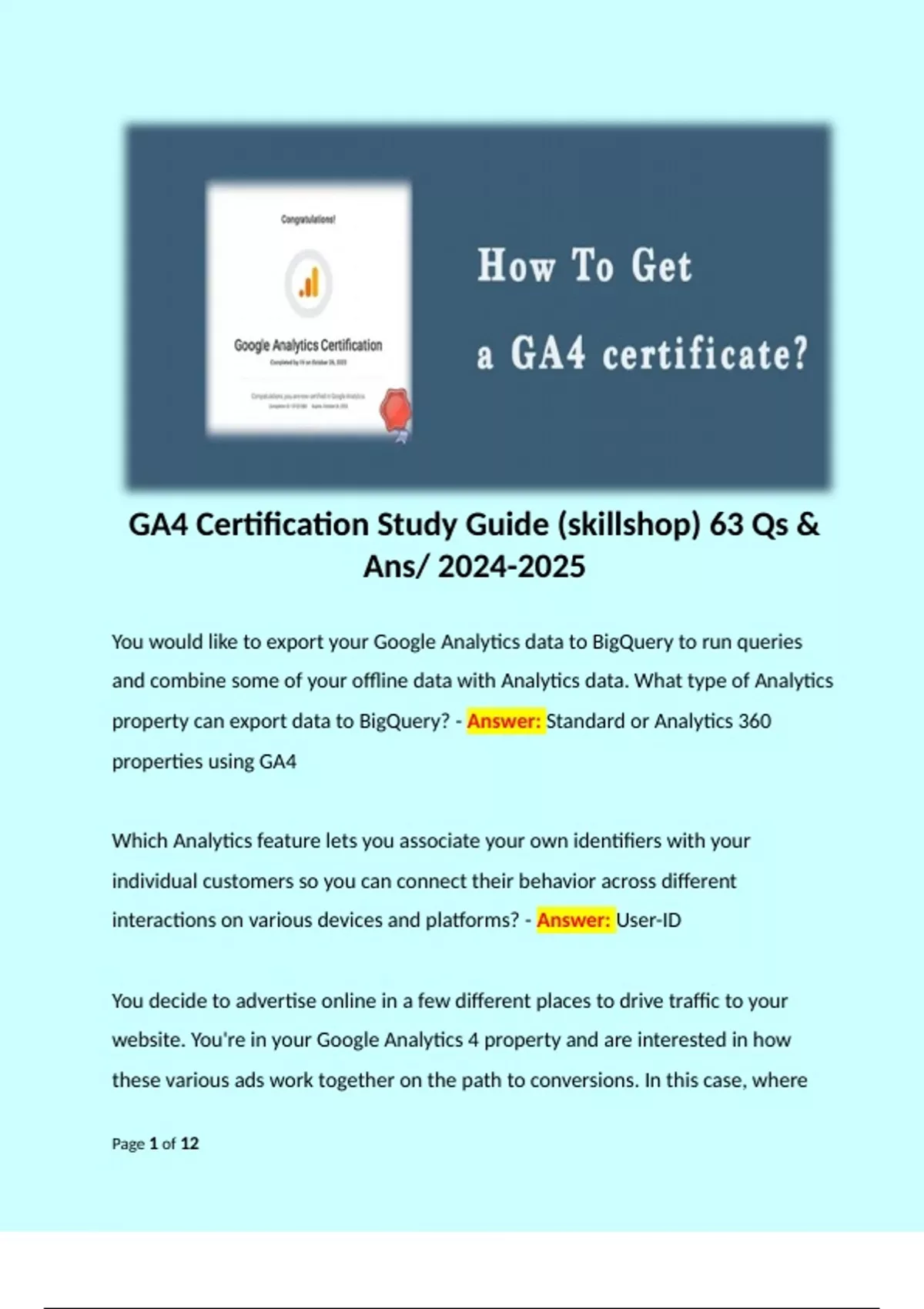 GA4 Certification Study Guide (skillshop) 63 Qs & Ans/