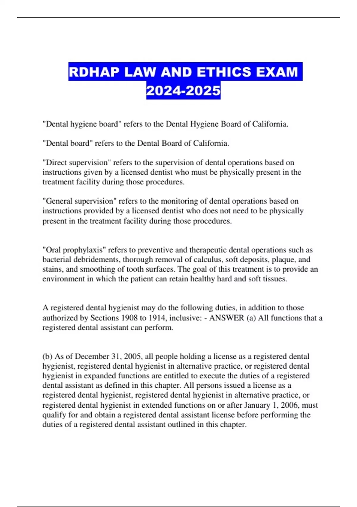 RDHAP LAW AND ETHICS EXAM