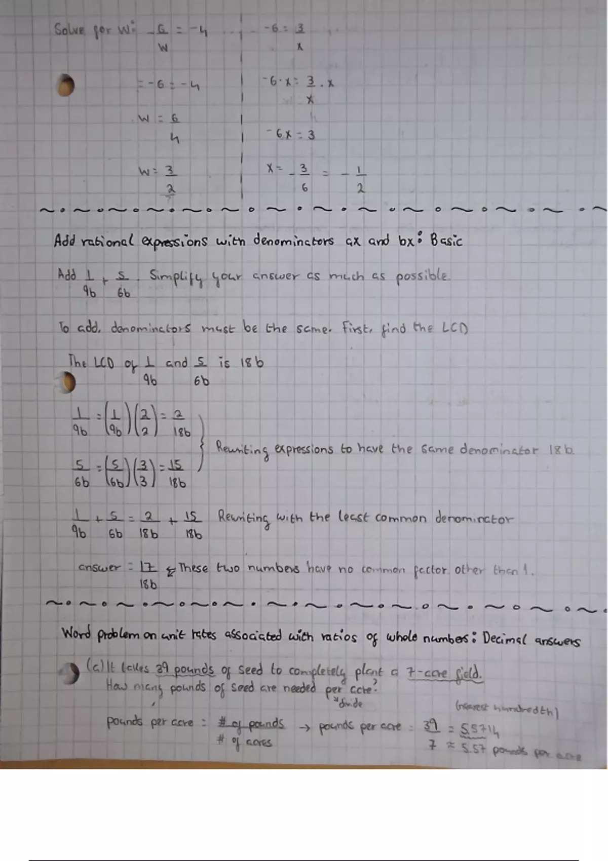 Add rational expressions with denominators ax and bx | Word problem on unit rates associated with ratios of whole numbers: decimal answers