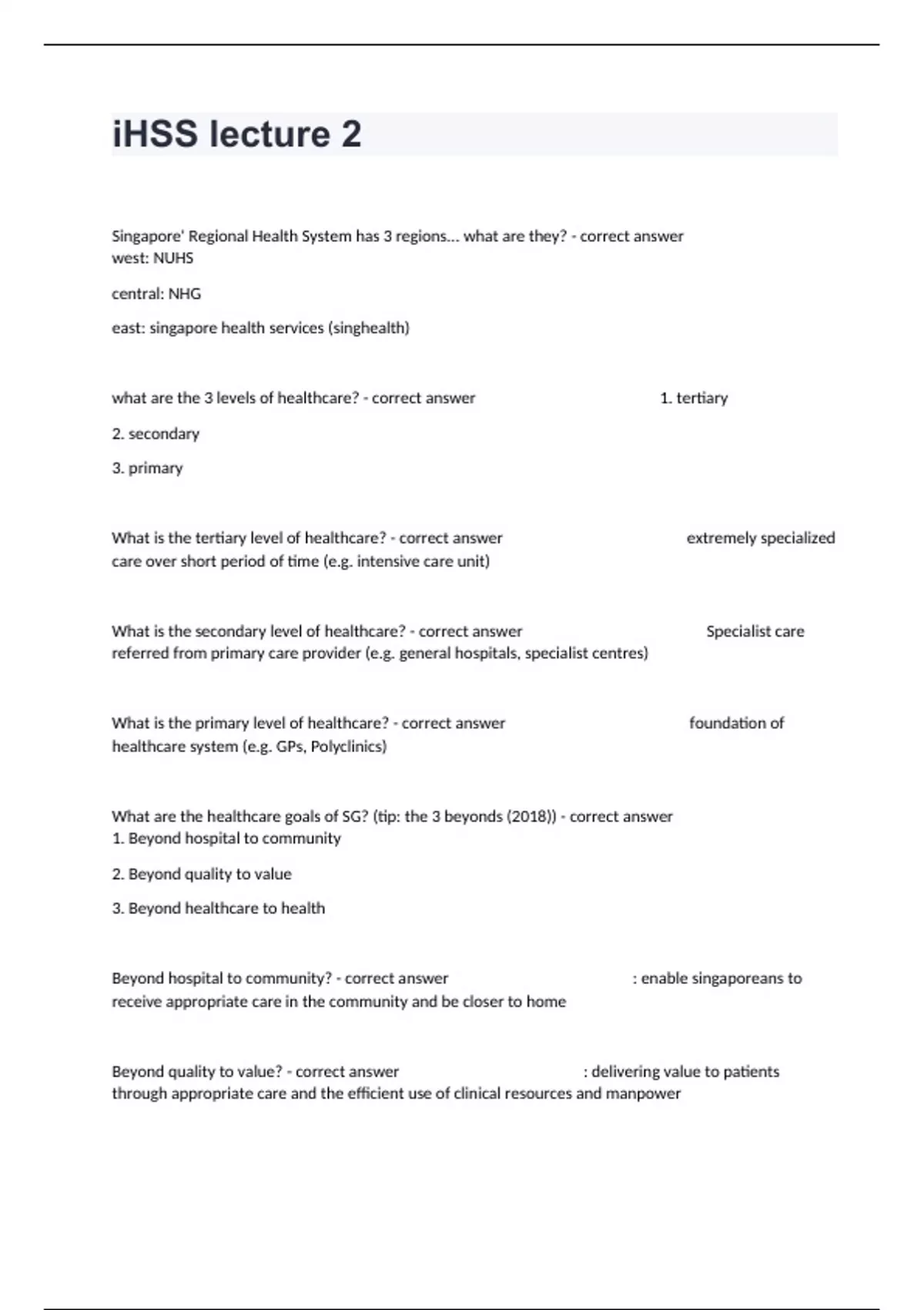 What are the healthcare goals of SG? (tip: the 3 beyonds (2018)) - correct answer