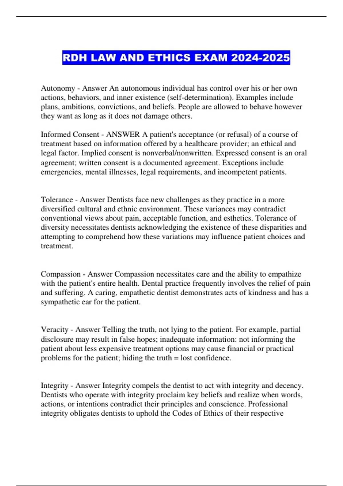 Integrity - Answer Integrity compels the dentist to act with integrity and decency.