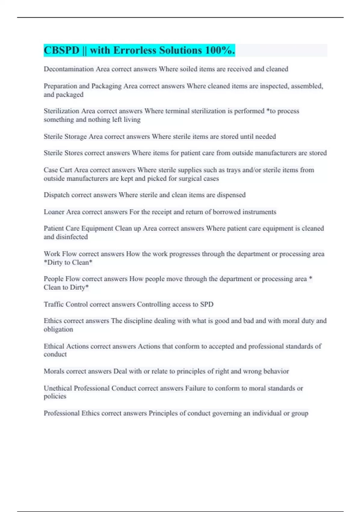Sterile processing is also know as: correct answers - Central Services