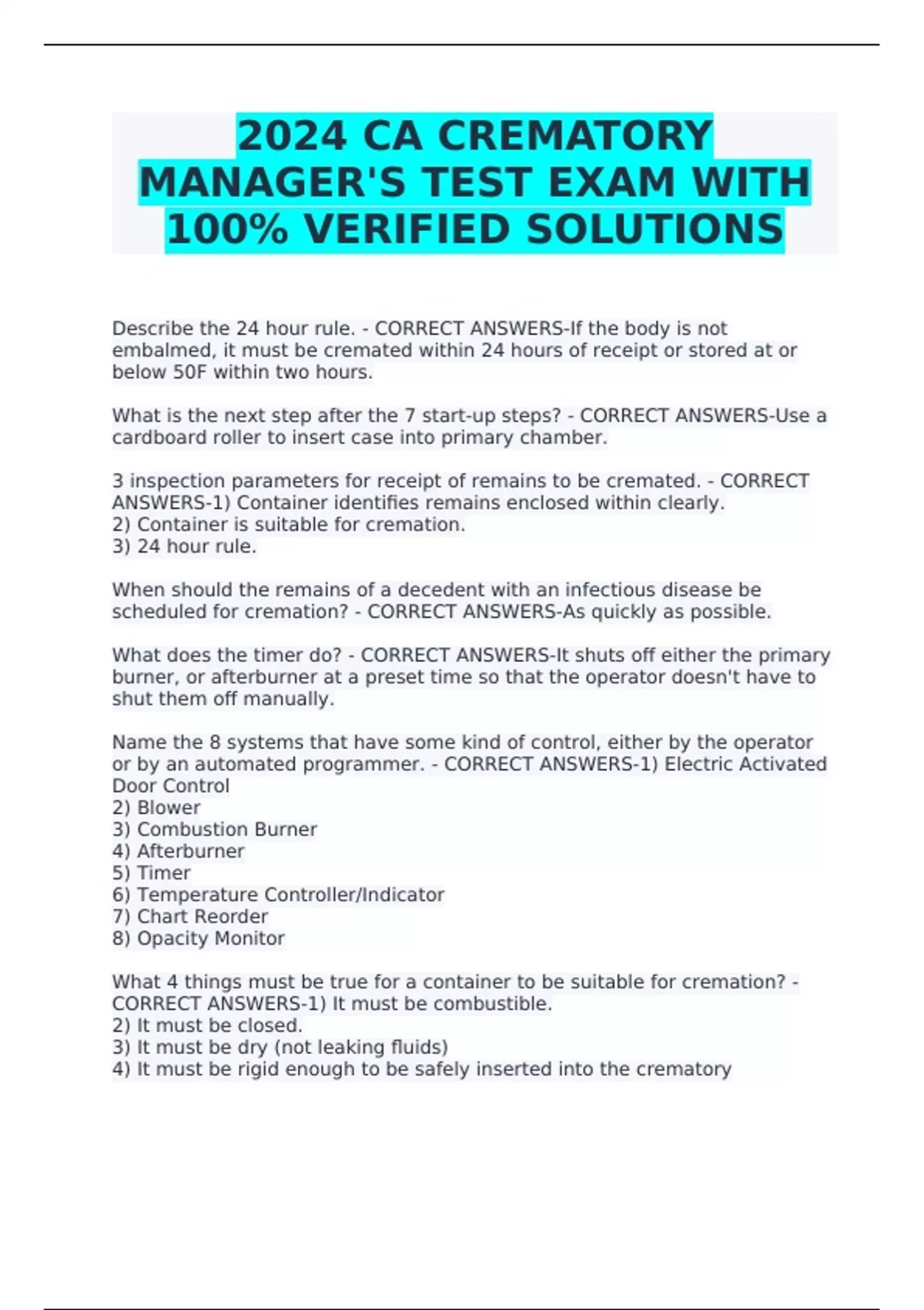 cremated remains? - CORRECT ANSWERS-Blow 400F