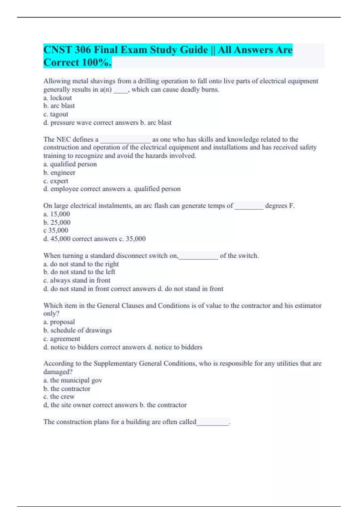 d. listed correct answers d. listed