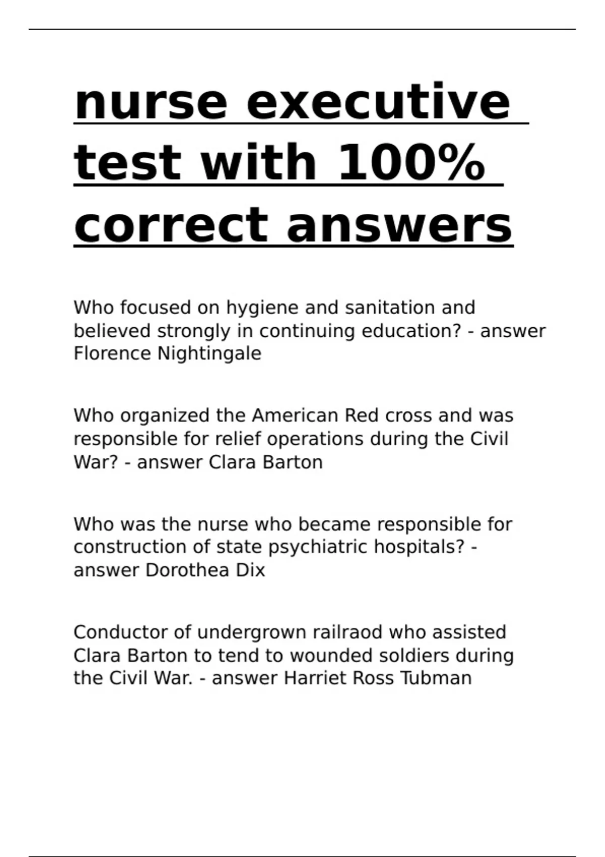 nurse executive test with 100- correct answers