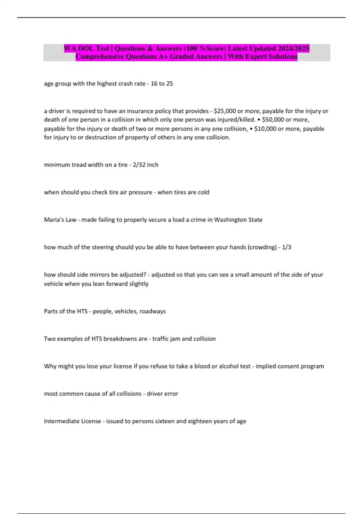 WA DOL Test | Questions & Answers (100 %Score) Latest Updated 2024/2025
