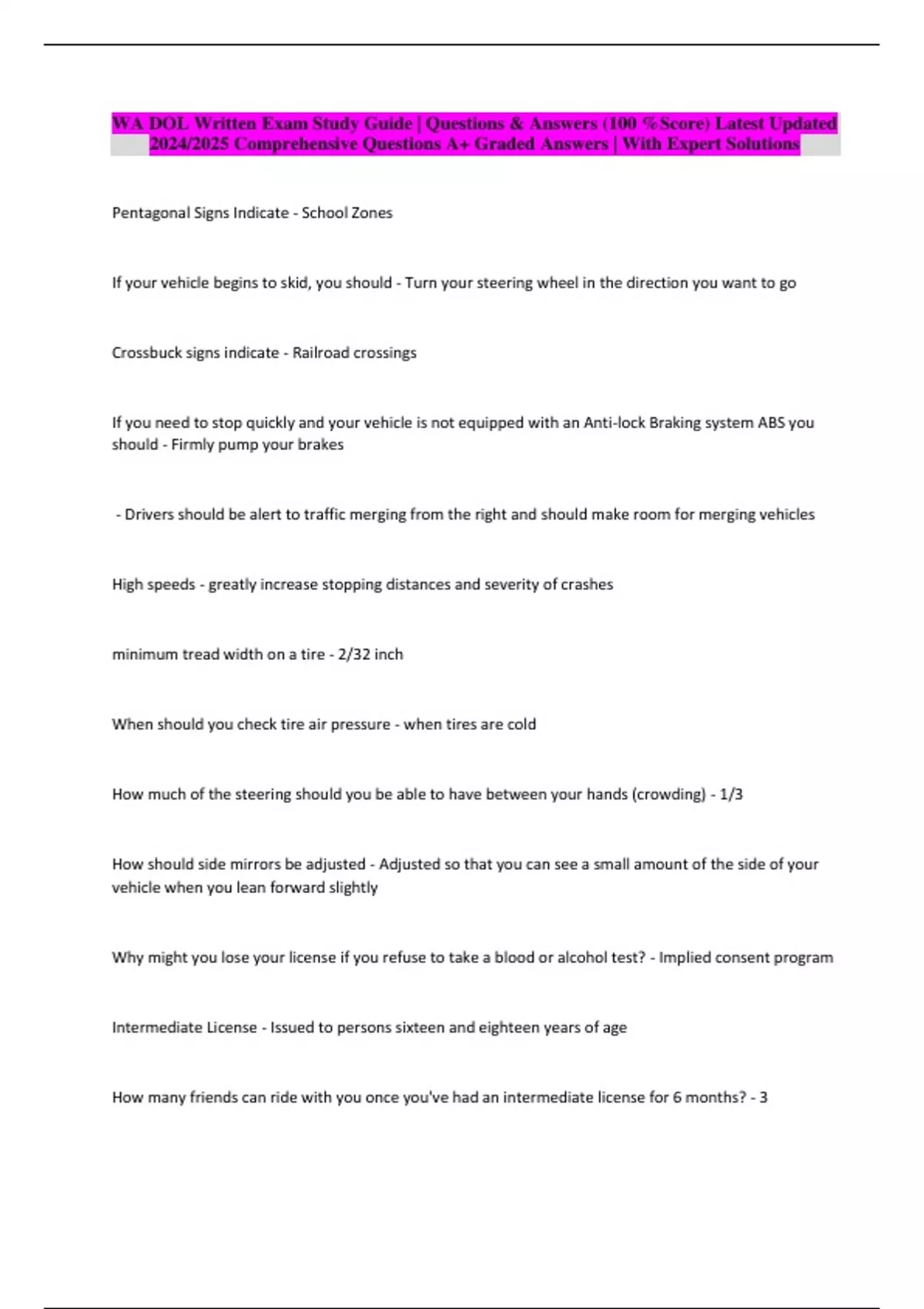 WA DOL Written Exam Study Guide | Questions & Answers (100 %Score) Latest Updated 2024/2025 Comprehensive Questions A+ Graded Answers | With Expert Solutions