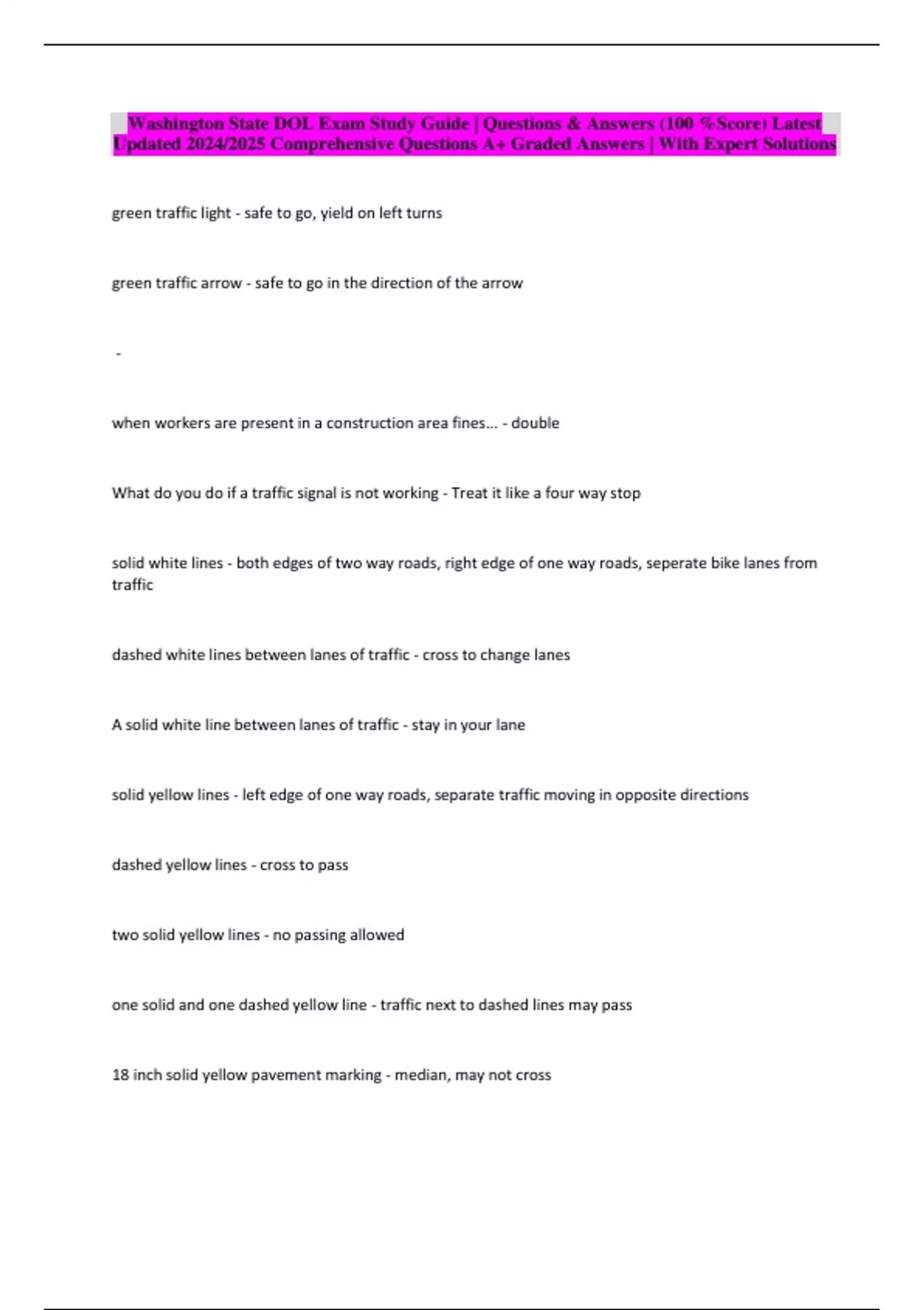 Washington State DOL Exam Study Guide | Questions & Answers (100 %Score) Latest