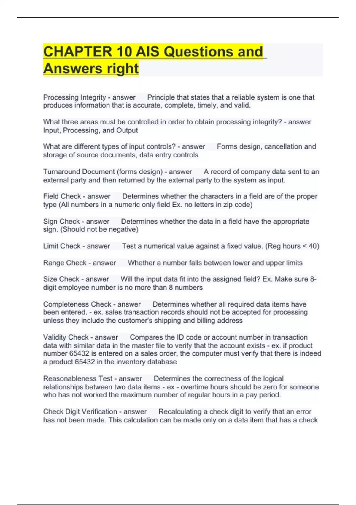 What three areas must be controlled in order to obtain processing integrity? - answer