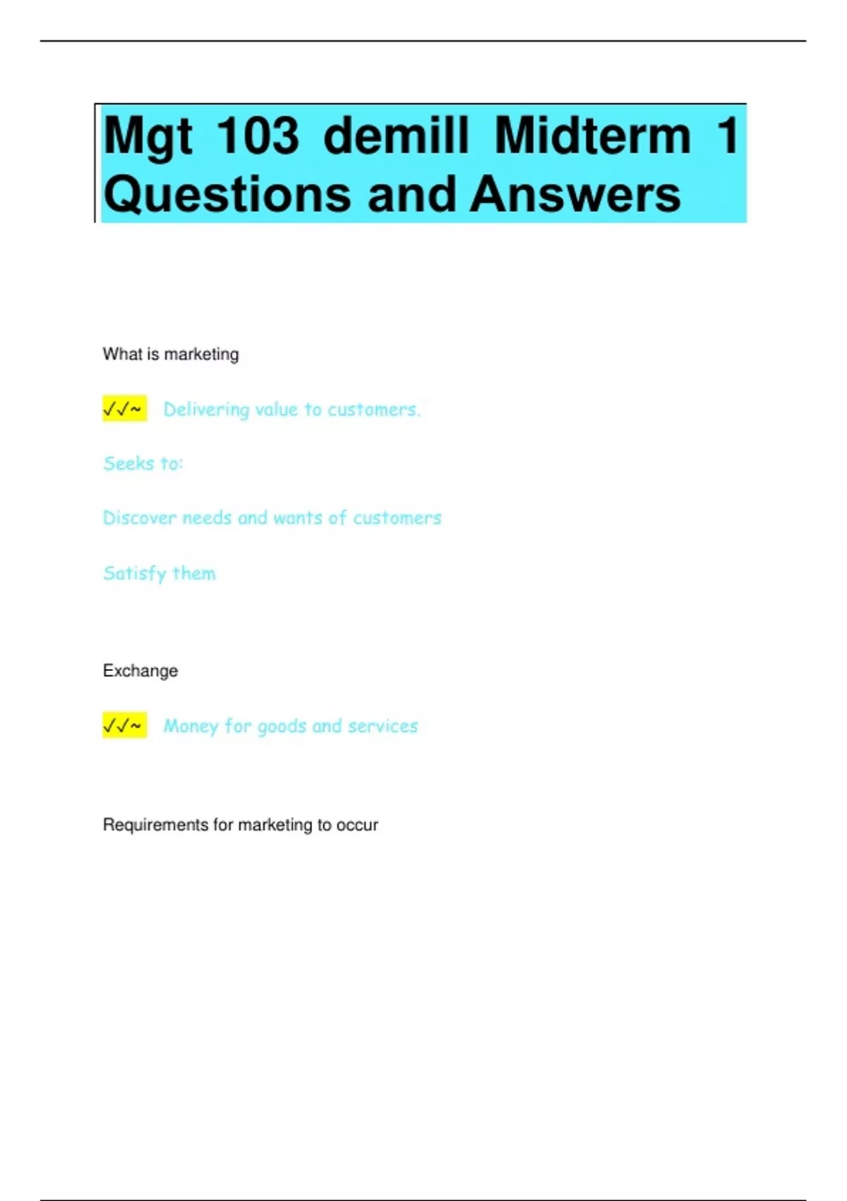 Requirements for marketing to occur