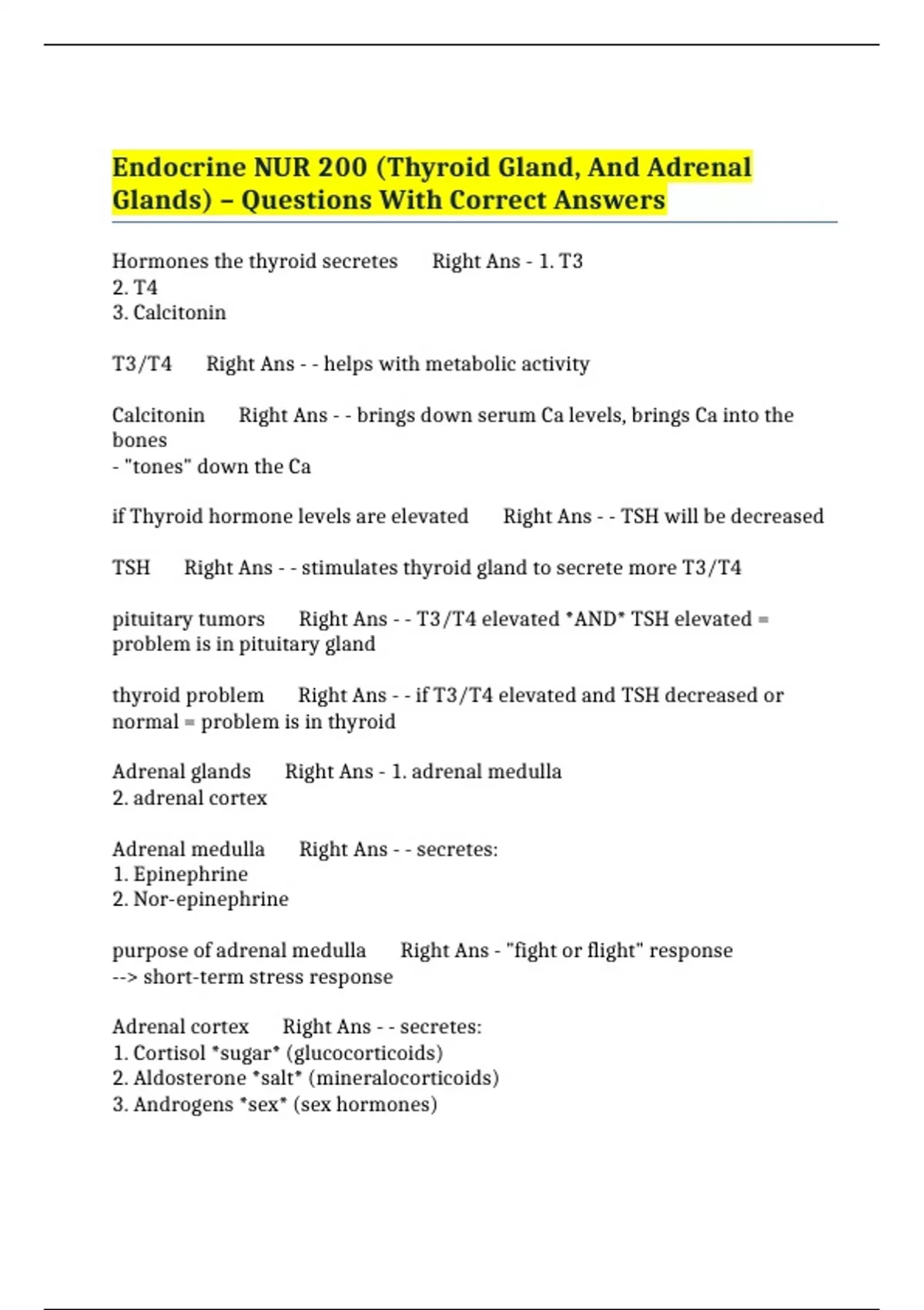 Adrenal cortex Right Ans - - secretes: