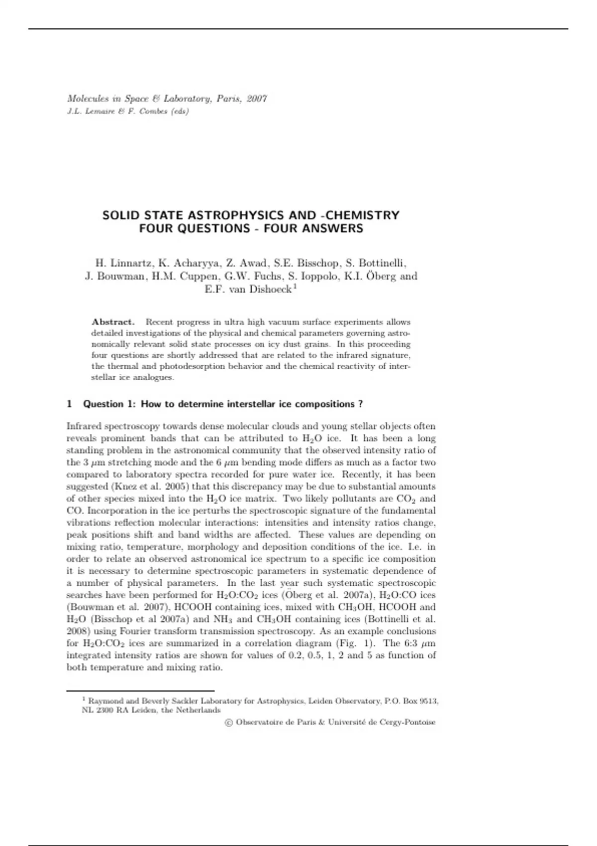 H. Linnartz, K. Acharyya, Z. Awad, S.E. Bisschop, S. Bottinelli,