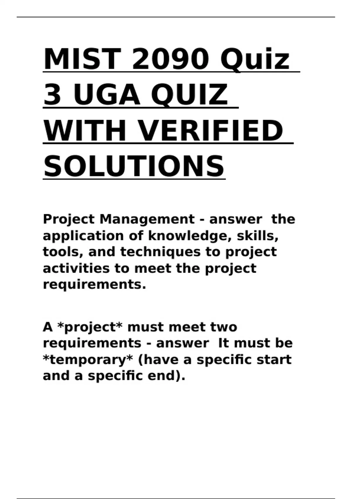 MIST 2090 Quiz 3 UGA WITH VERIFIED SOLUTIONS.