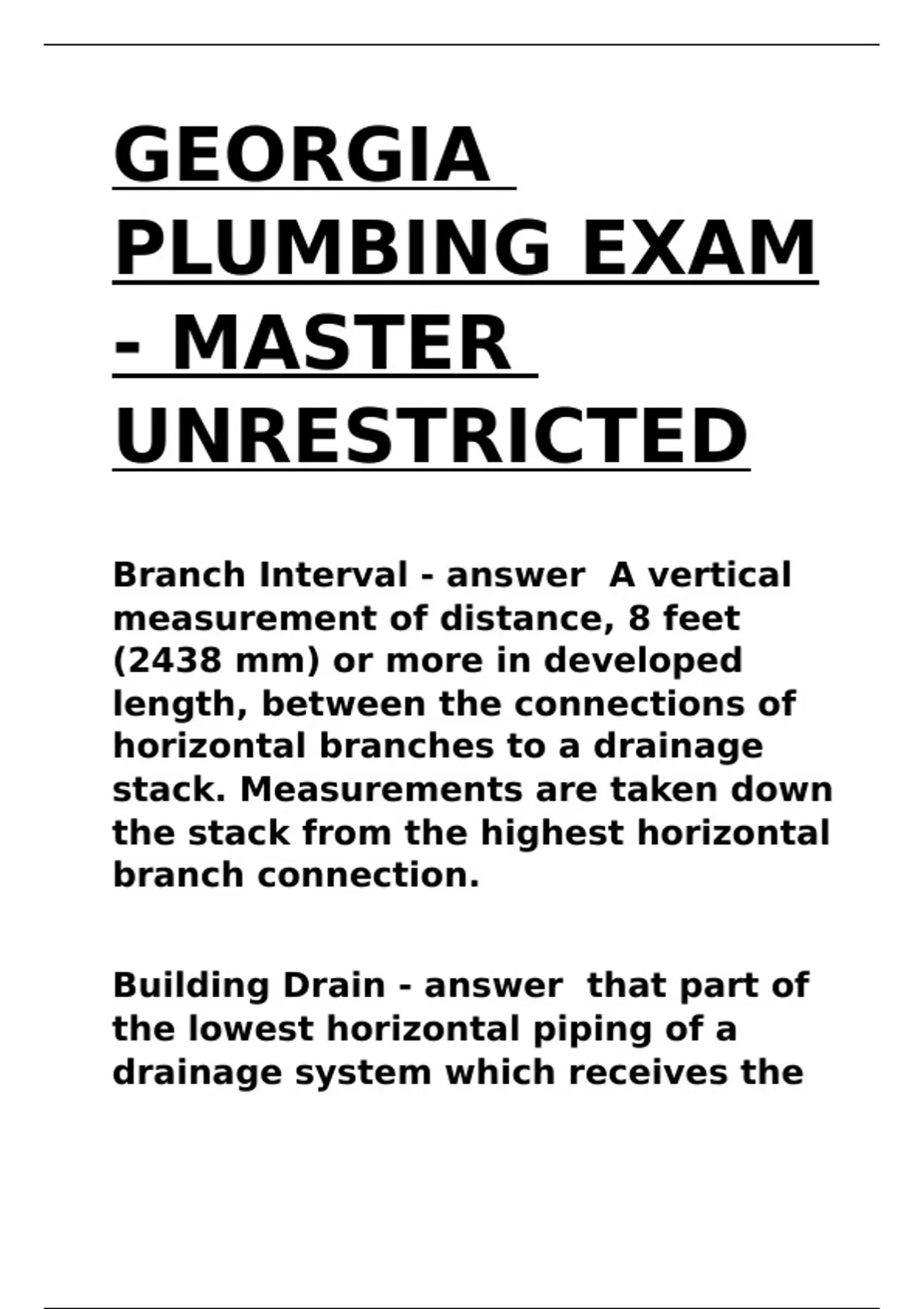 GEORGIA PLUMBING EXAM - MASTER UNRESTRICTED.