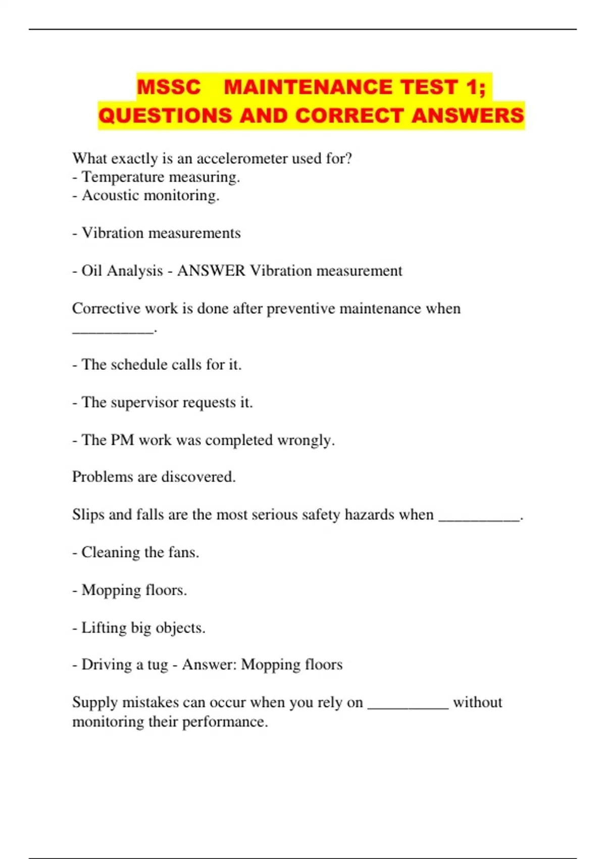 MSSC MAINTENANCE TEST 1; QUESTIONS AND CORRECT ANSWERS...