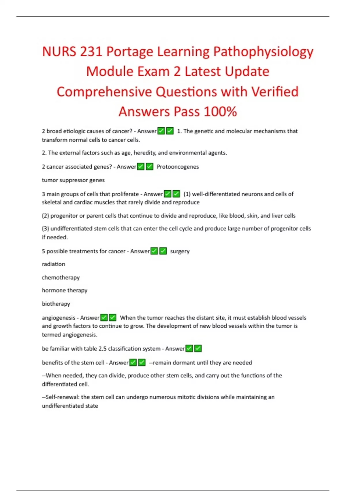 cancer cell characteristics as summarized in table 2.3 - Answer