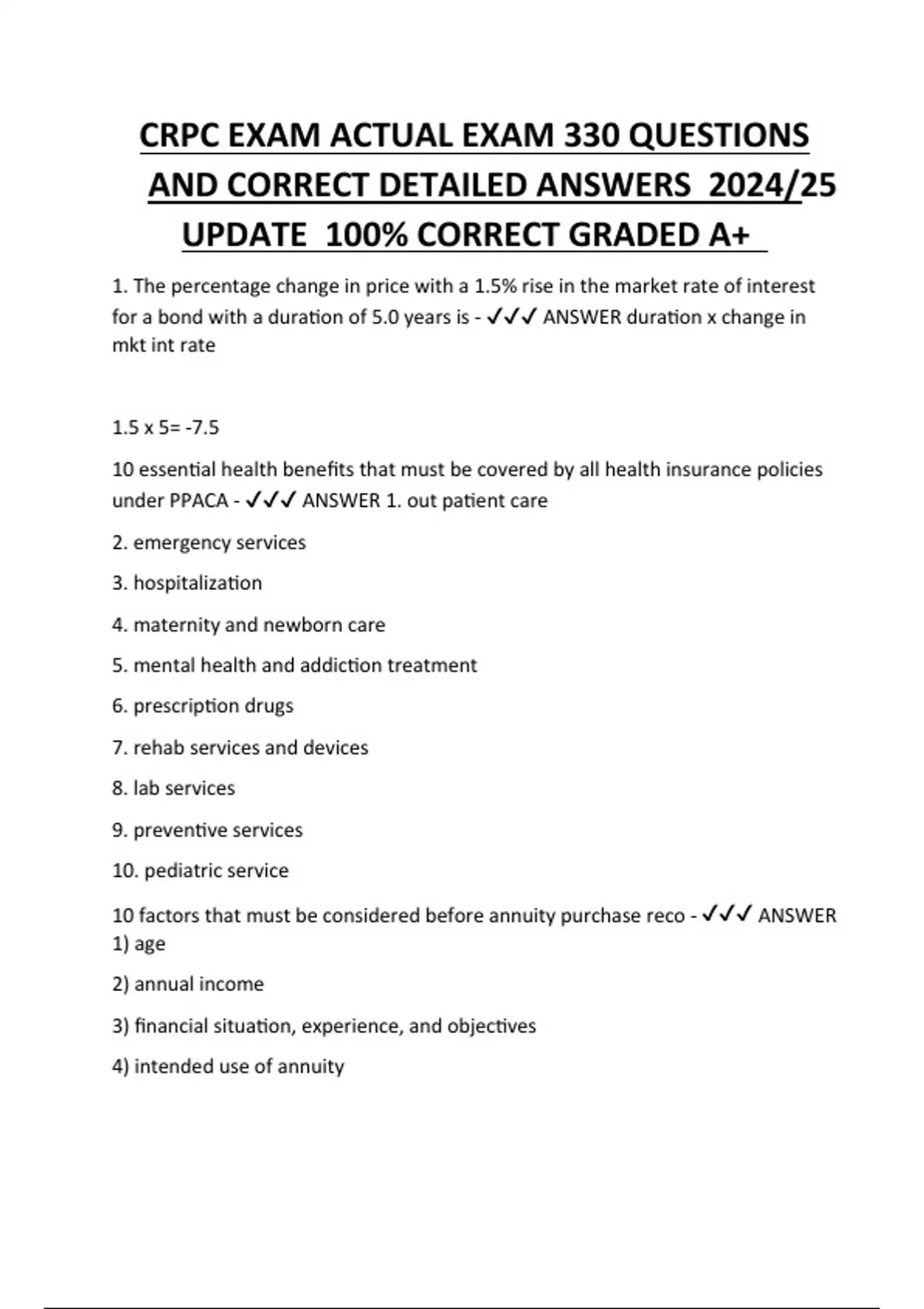 CRPC EXAM ACTUAL EXAM 330 QUESTIONS AND CORRECT DETAILED ANSWERS 2024/25 UPDATE 100% CORRECT GRADED A+
