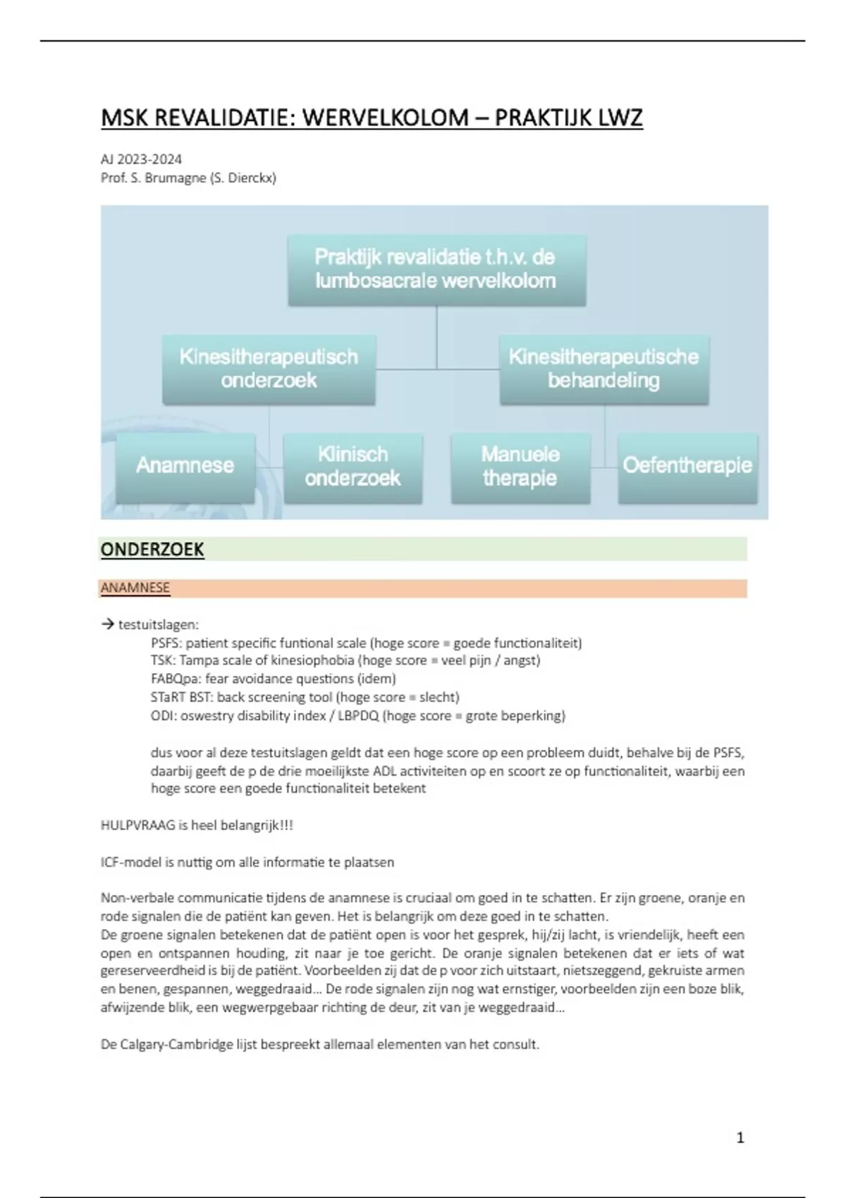MSK REVALIDATIE: WERVELKOLOM – PRAKTIJK LWZ