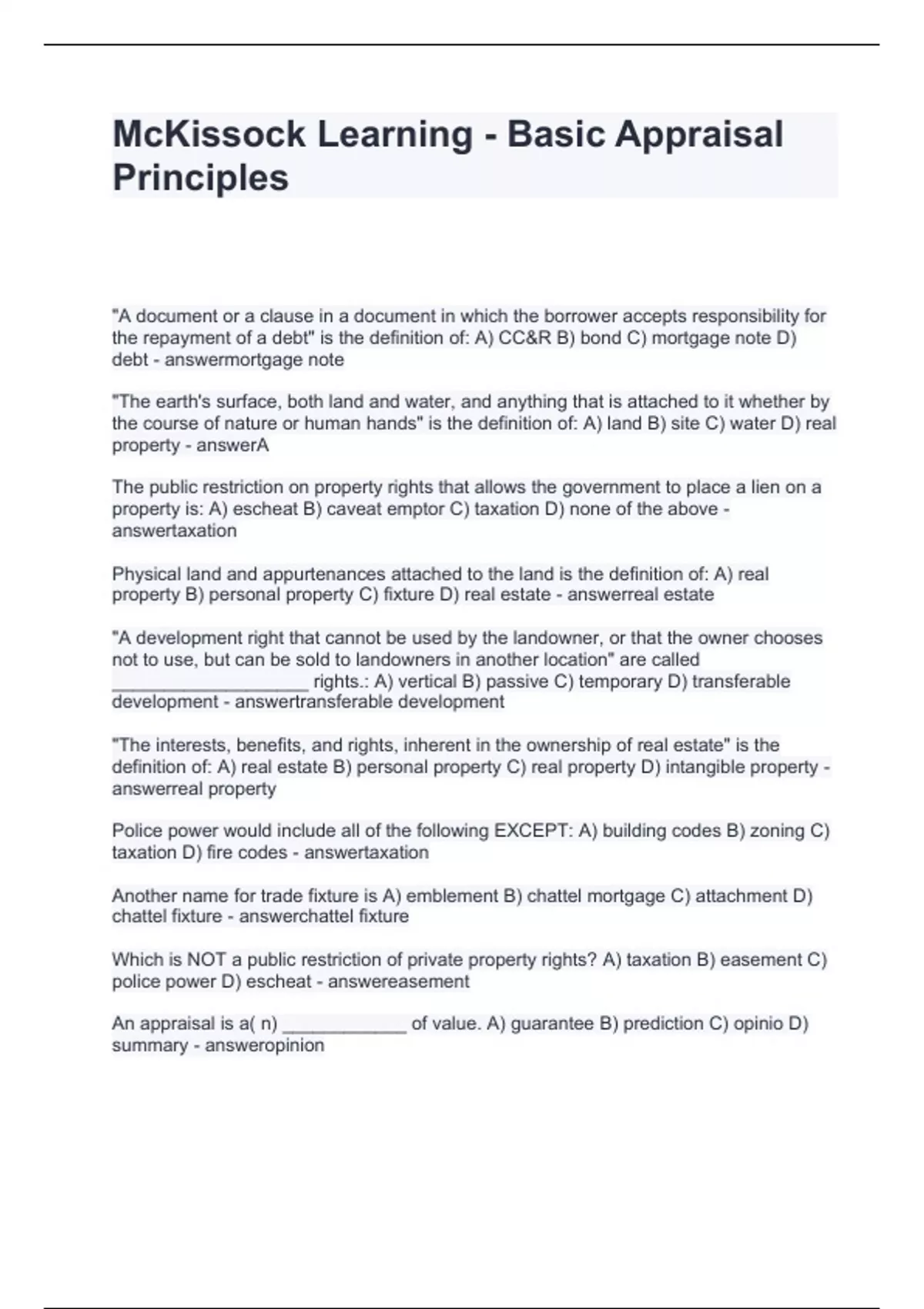 McKissock Learning - Basic Appraisal Principles Questions and Answers Graded +