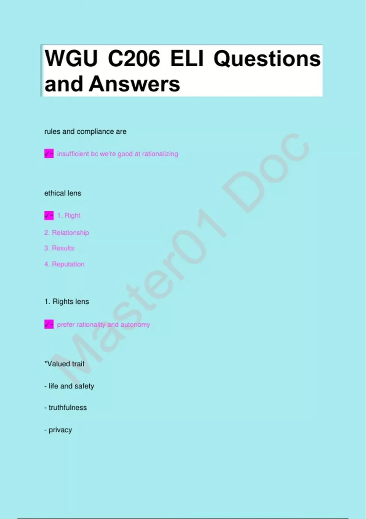 ✓~ is everyone who is thoughtful knows what is right and what is ethical, what are there so