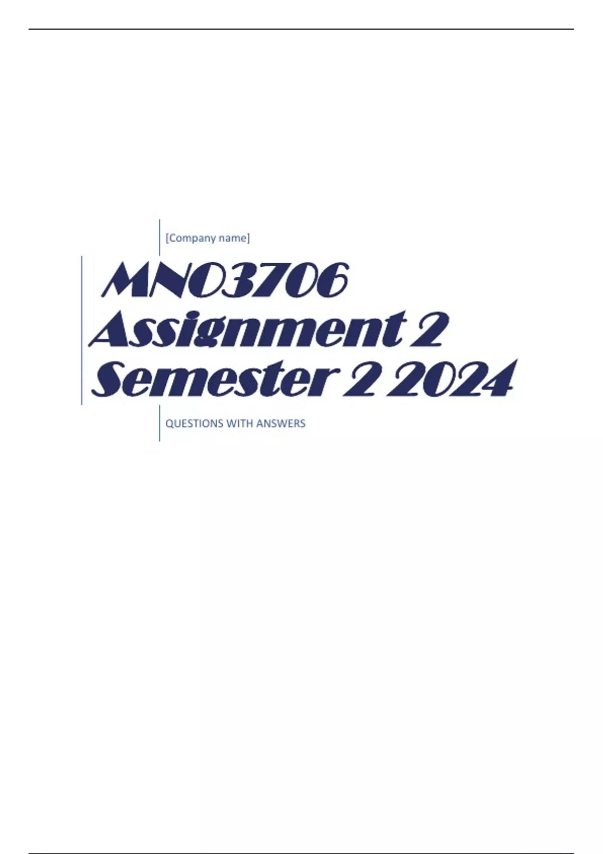 QUESTIONS WITH ANSWERS MNO3706 Assignment 2 Semester 2 2024