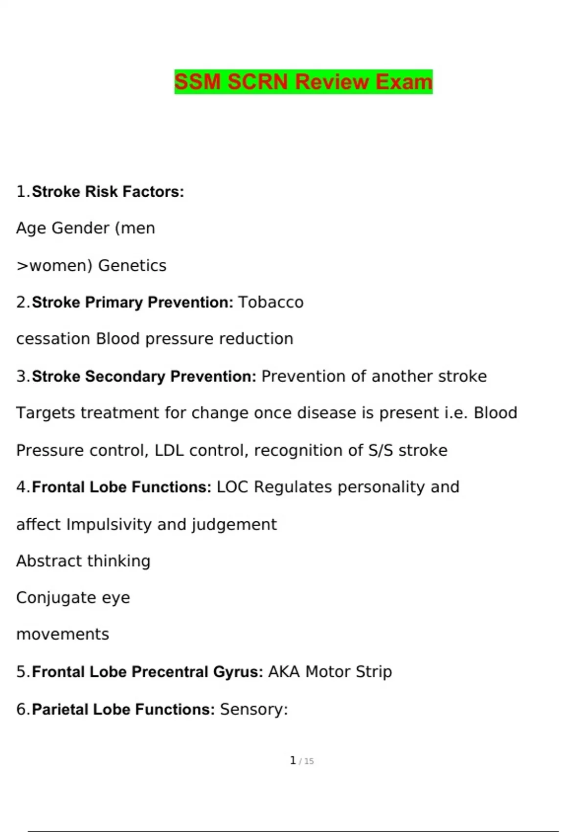 5.Frontal Lobe Precentral Gyrus: AKA Motor Strip