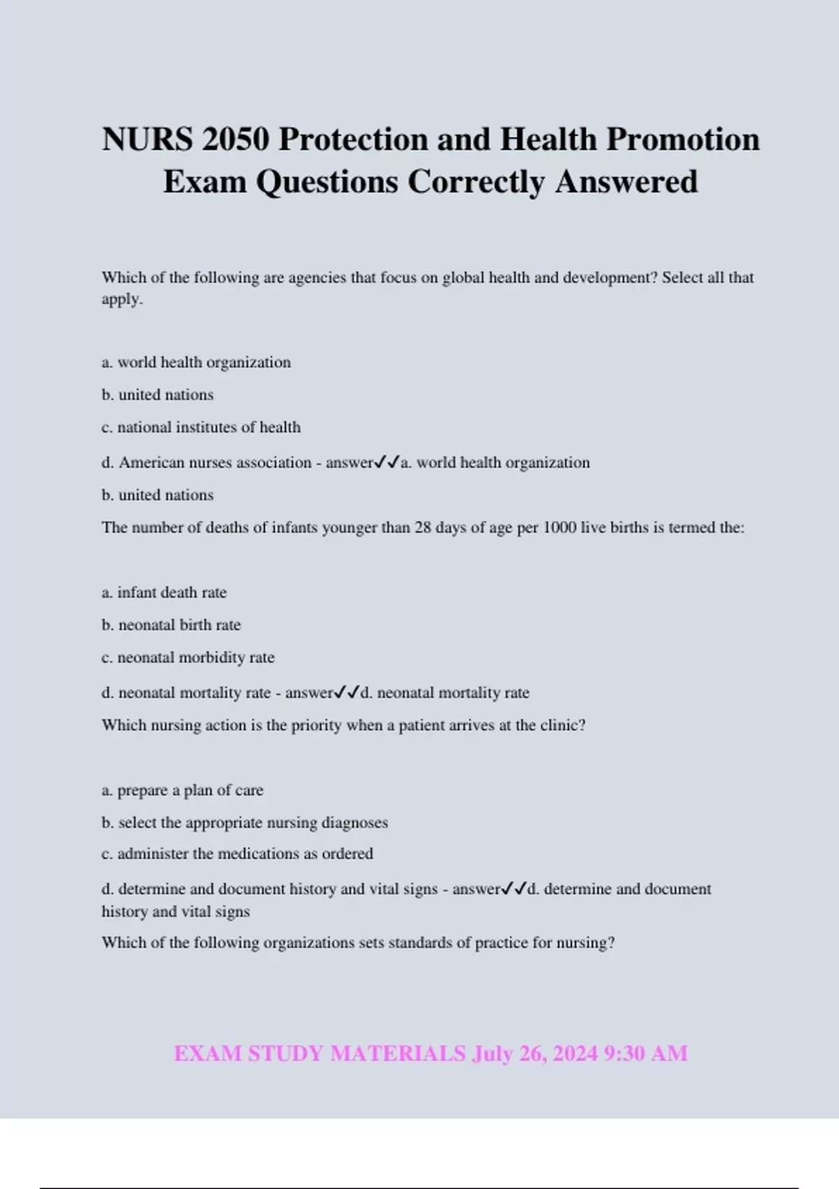 EXAM STUDY MATERIALS July 26, 2024 9:30 AM