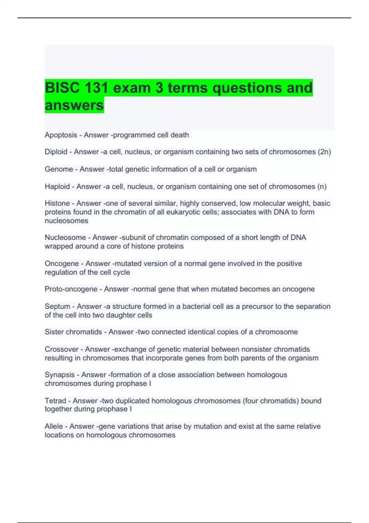 Crossover - Answer -exchange of genetic material between nonsister chromatids