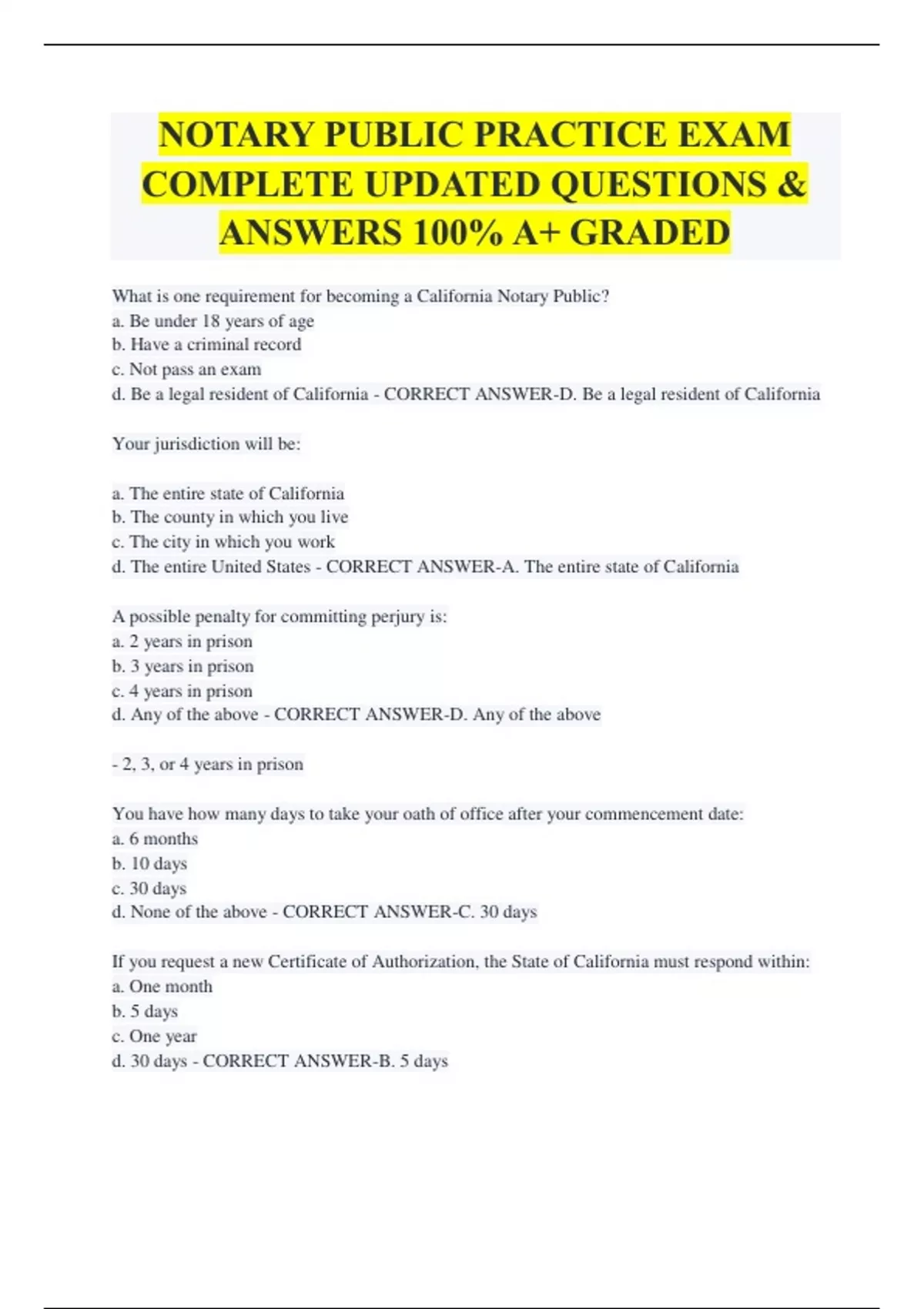 d. 30 days - CORRECT ANSWER-B. 5 days