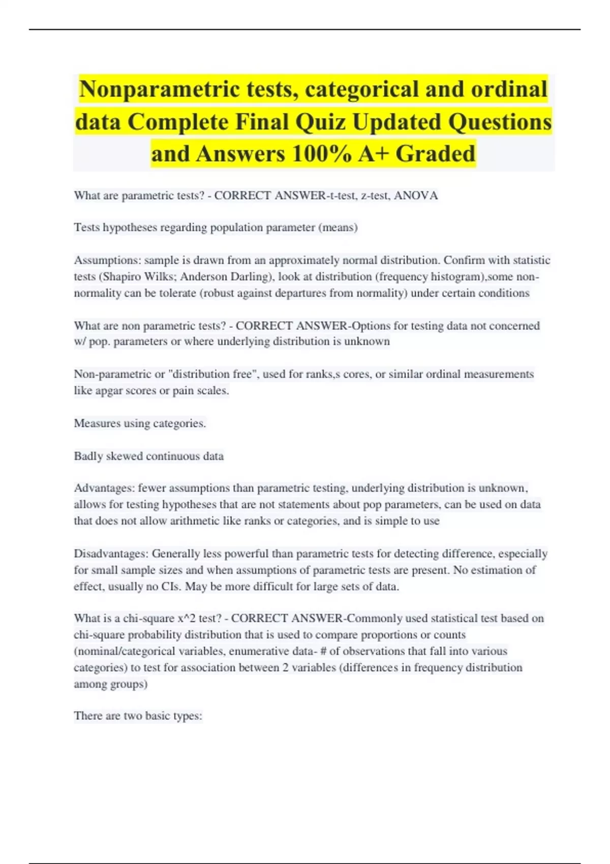 Nonparametric tests, categorical and ordinal data Complete Final Quiz Updated Questions and Answers 100% A+ Graded