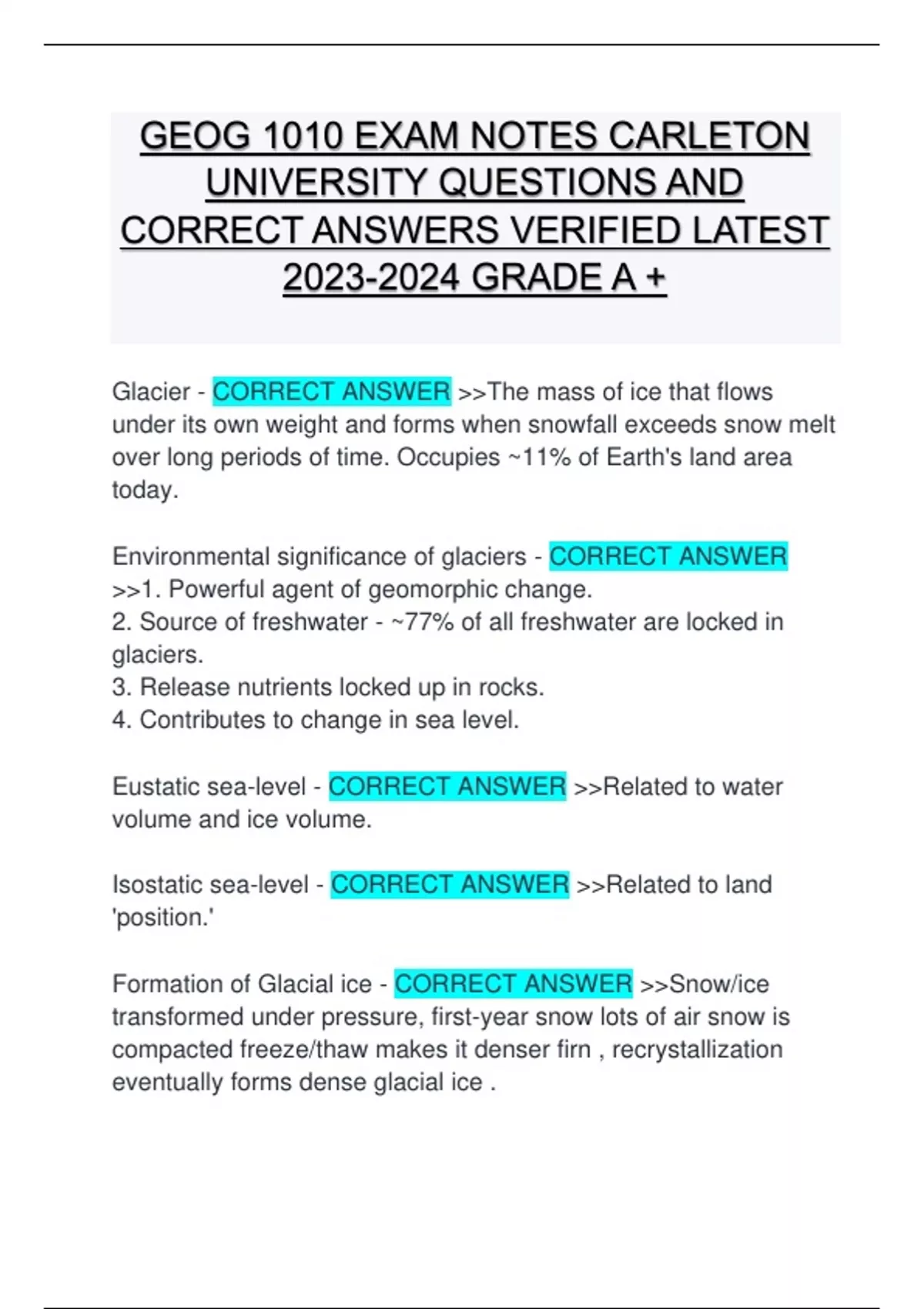 Formation of Glacial ice - CORRECT ANSWER >>Snow/ice