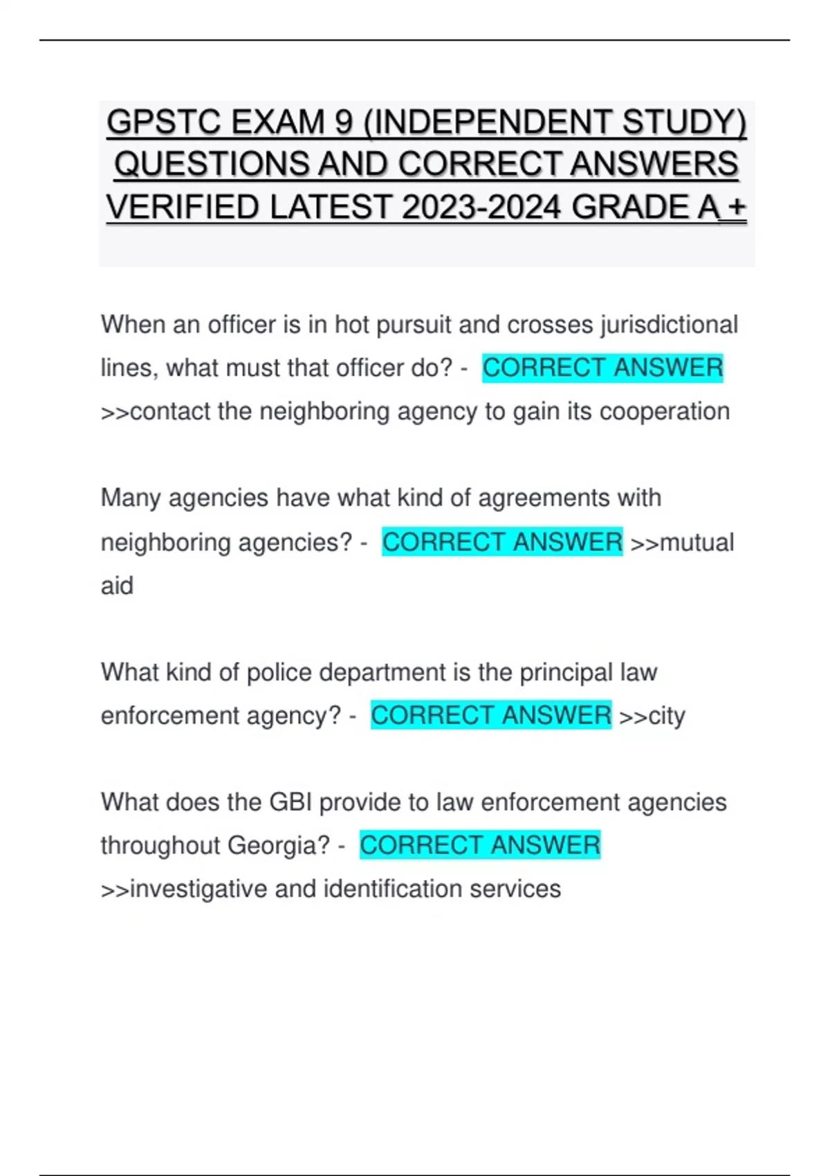 QUESTIONS AND CORRECT ANSWERS