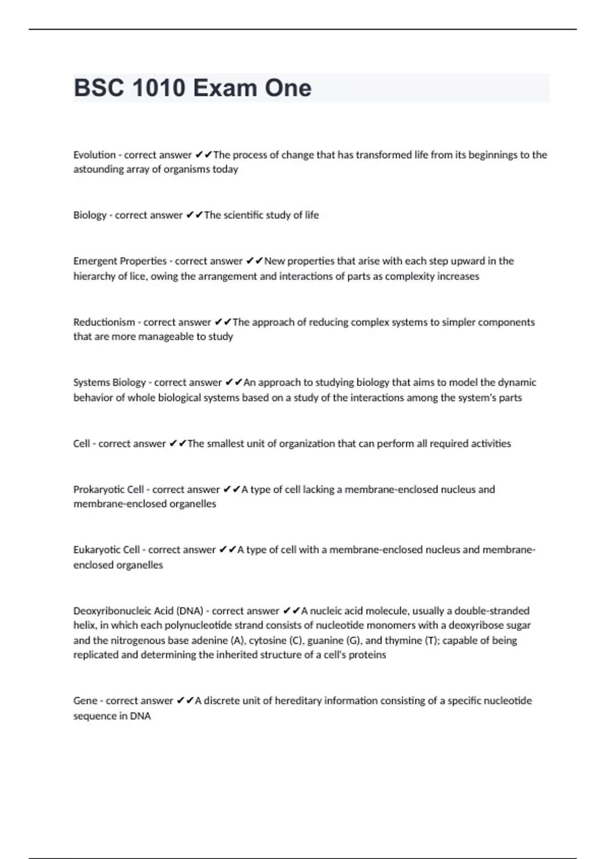BSC 1010 Exam One questions well answered to pass