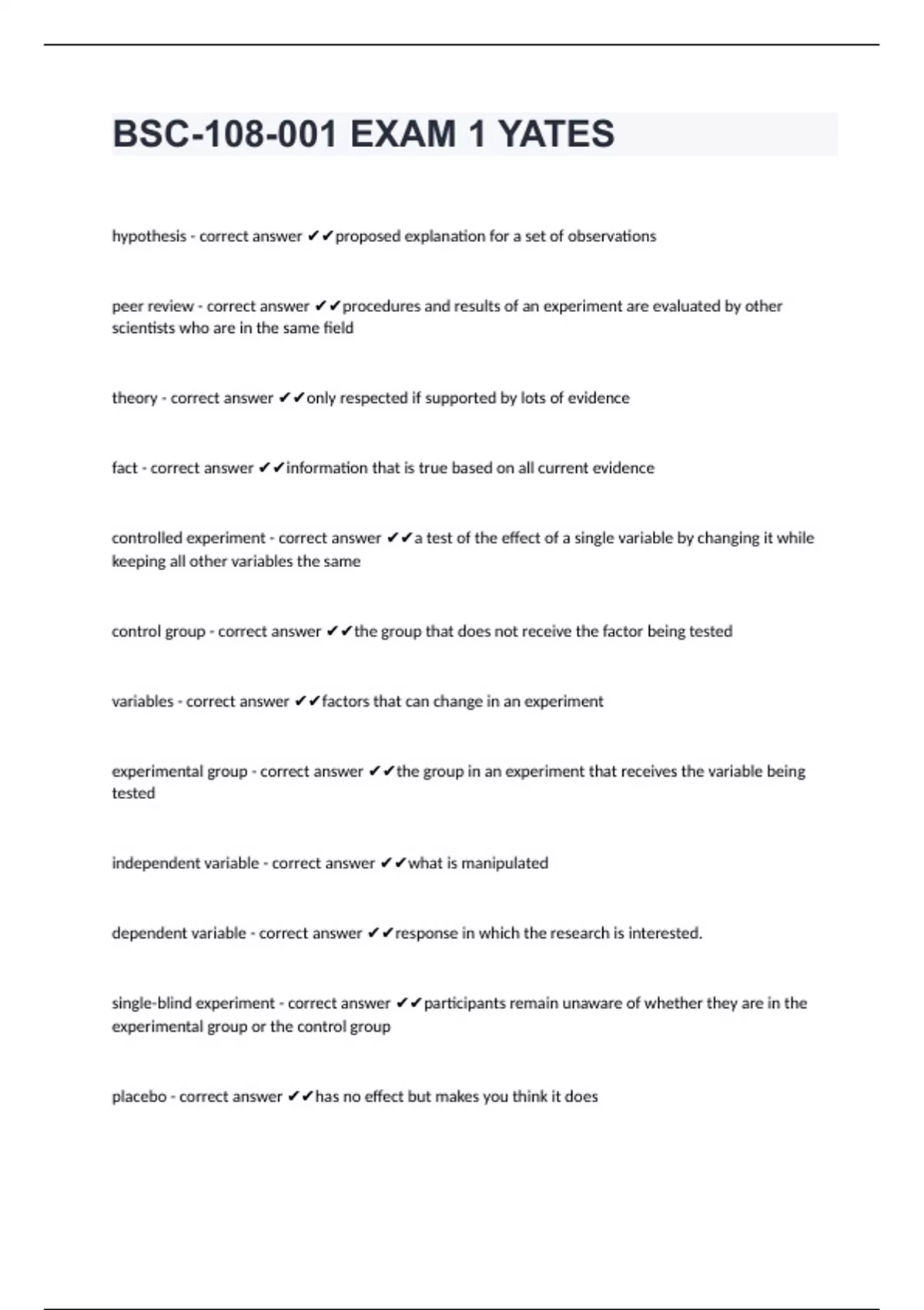 BSC-108-001 EXAM 1 YATES with correct answers graded A+