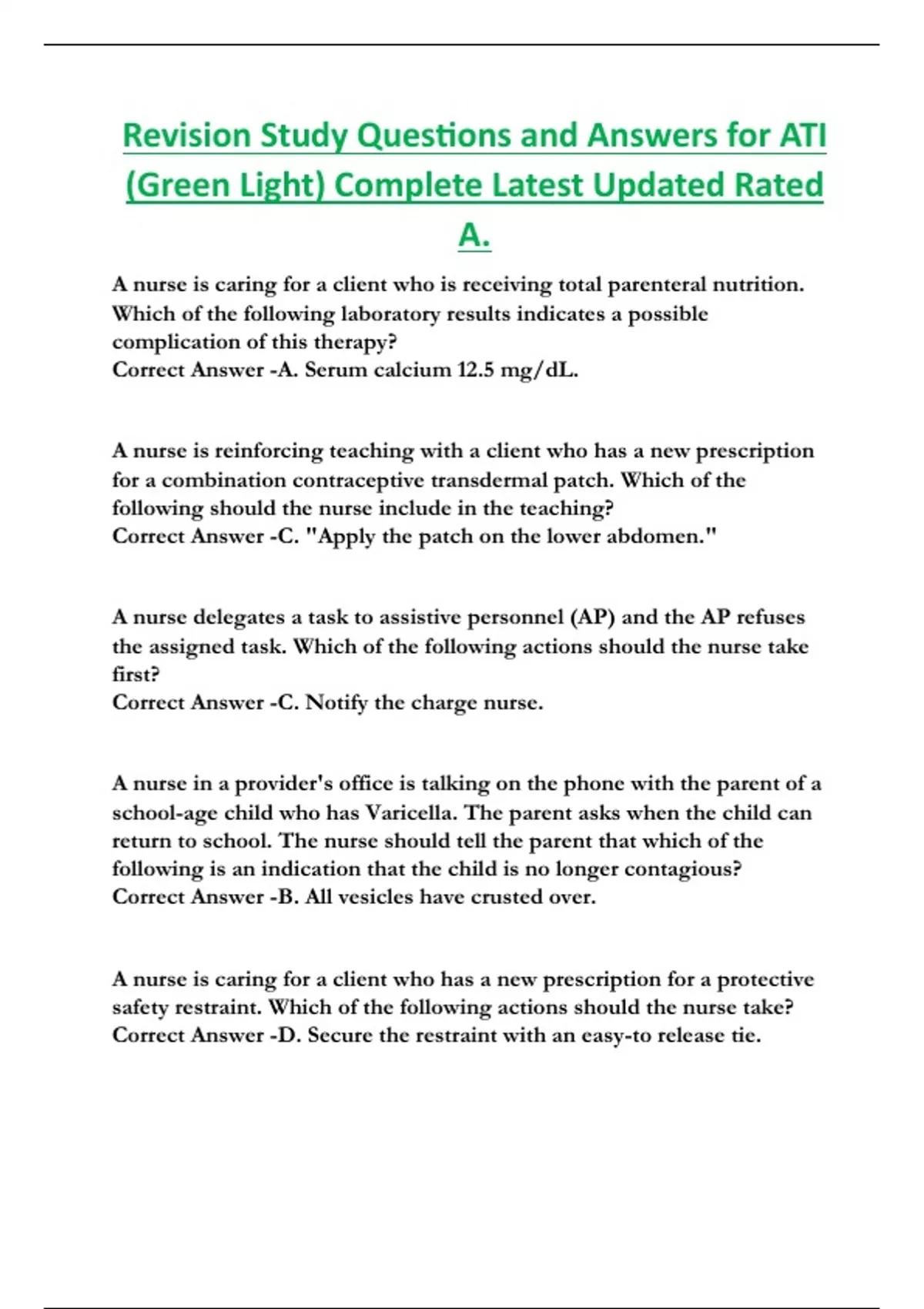 Revision Study Questions and Answers for ATI (Green Light) Complete Latest Updated Rated A.