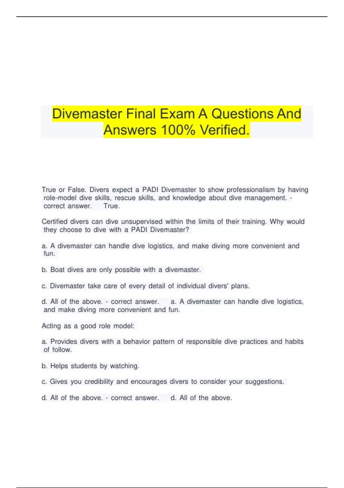 Divemaster Final Exam A Questions And Answers 100% Verified.