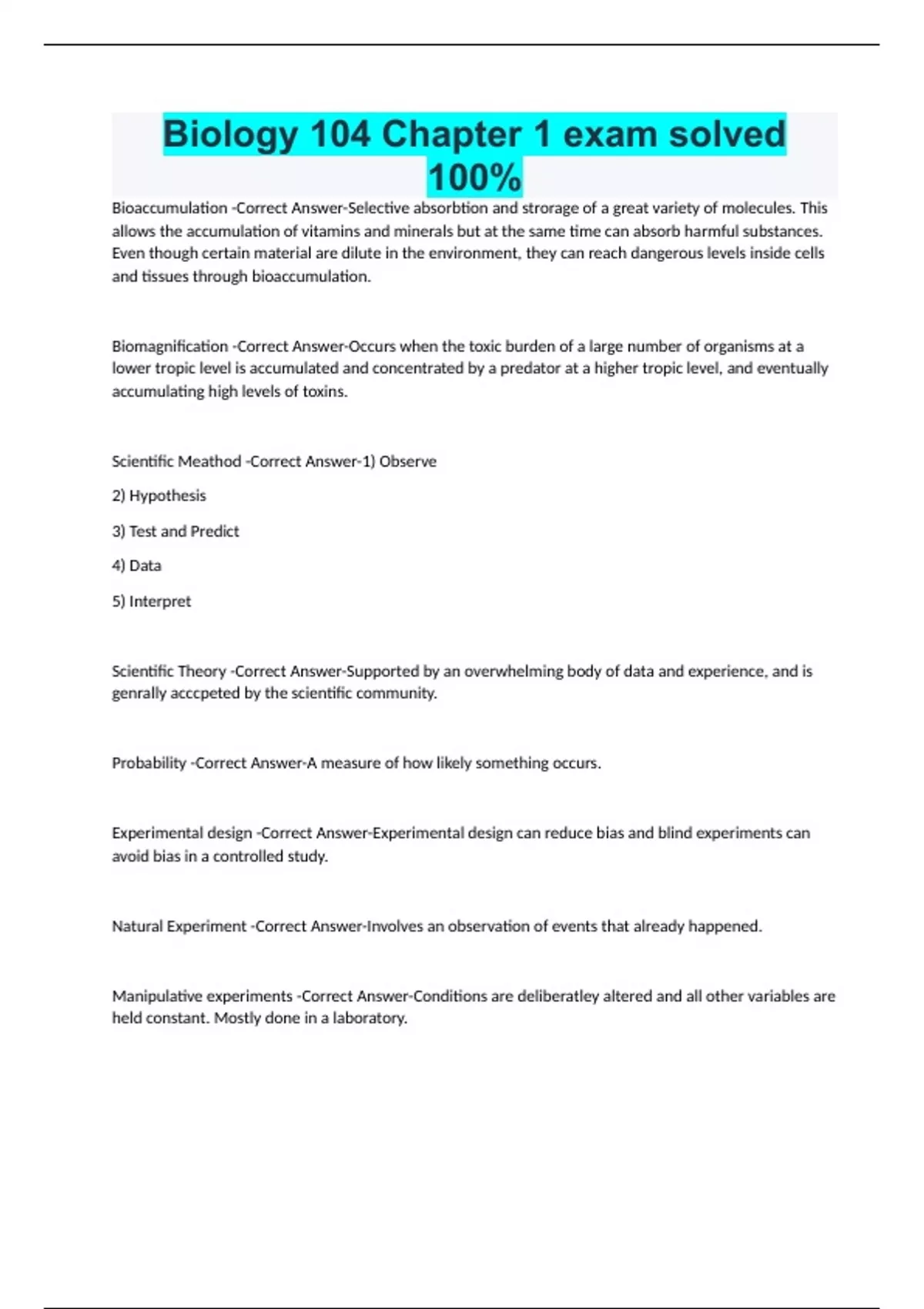 Scientific Meathod -Correct Answer-1) Observe
