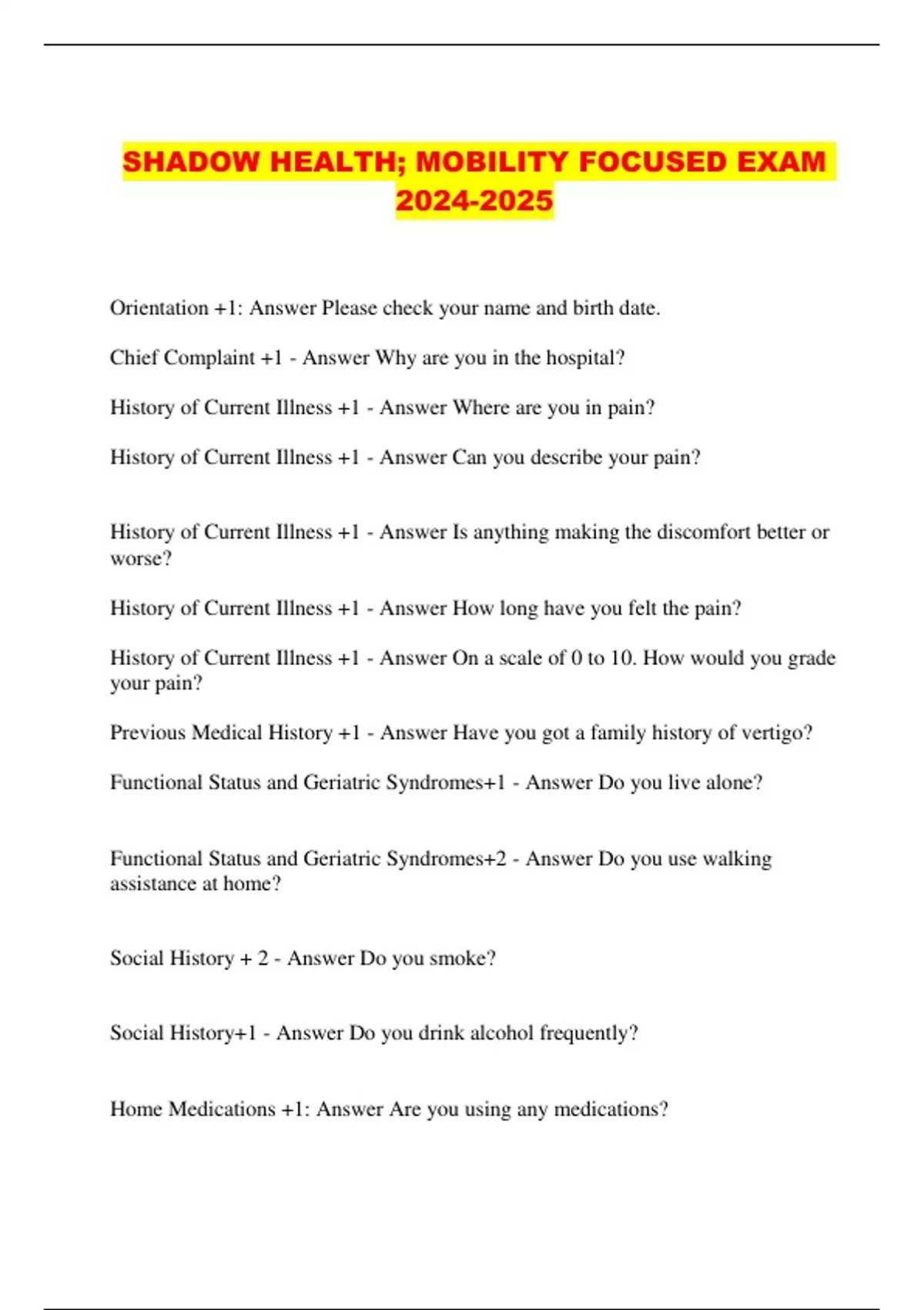 SHADOW HEALTH; MOBILITY FOCUSED EXAM