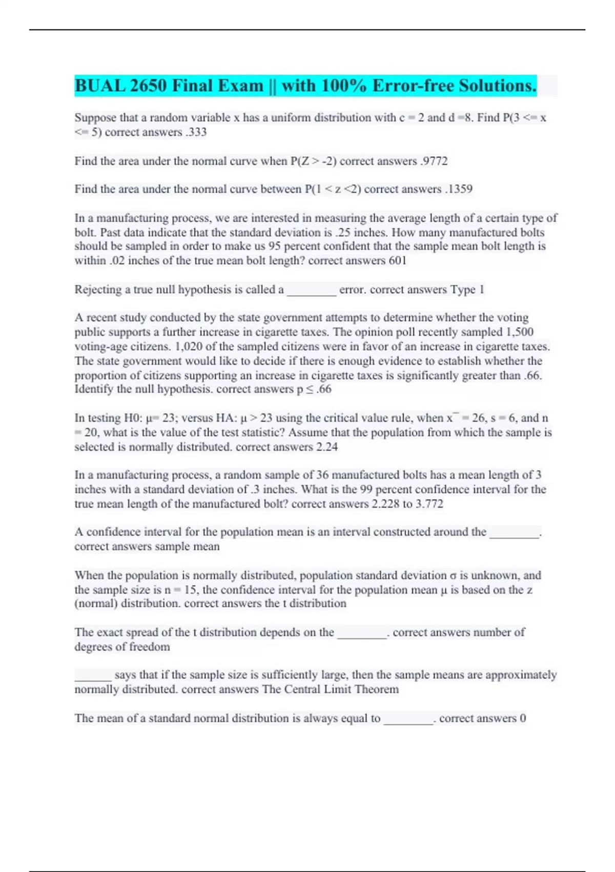 BUAL 2650 Final Exam || with 100% Error-free Solutions.