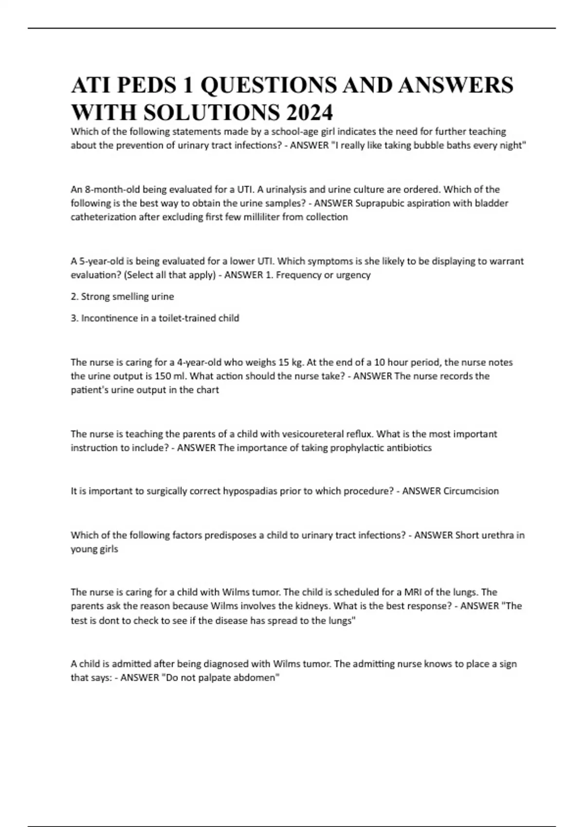 ATI PEDS 1 QUESTIONS AND ANSWERS WITH SOLUTIONS 2024