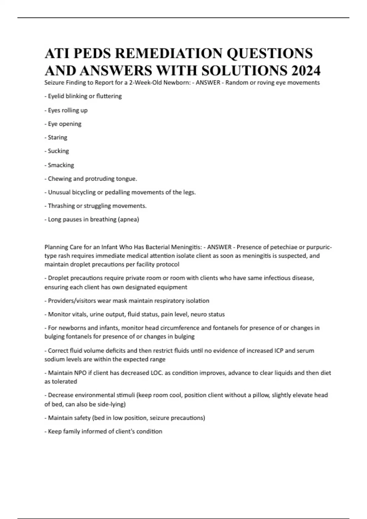 ATI PEDS REMEDIATION QUESTIONS AND ANSWERS WITH SOLUTIONS 2024