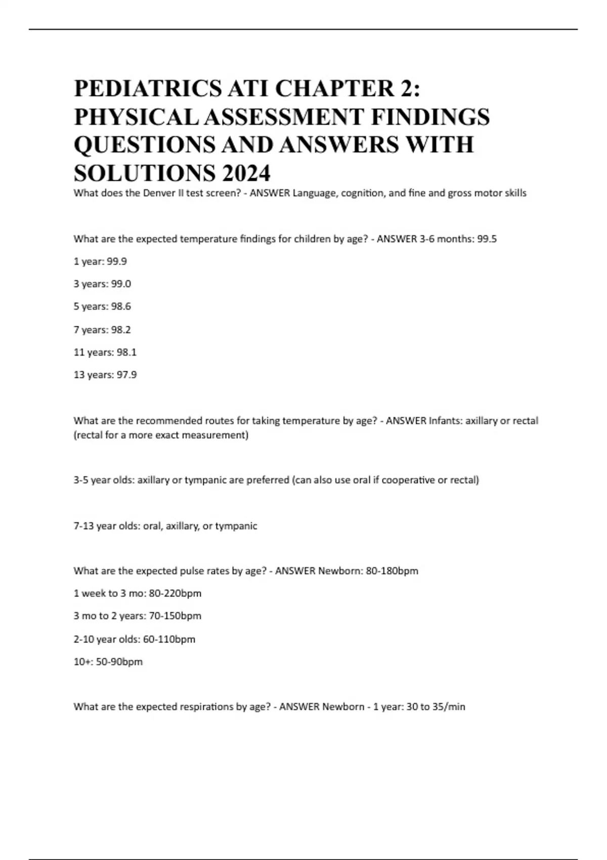 What are the expected respirations by age? - ANSWER Newborn - 1 year: 30 to 35/min