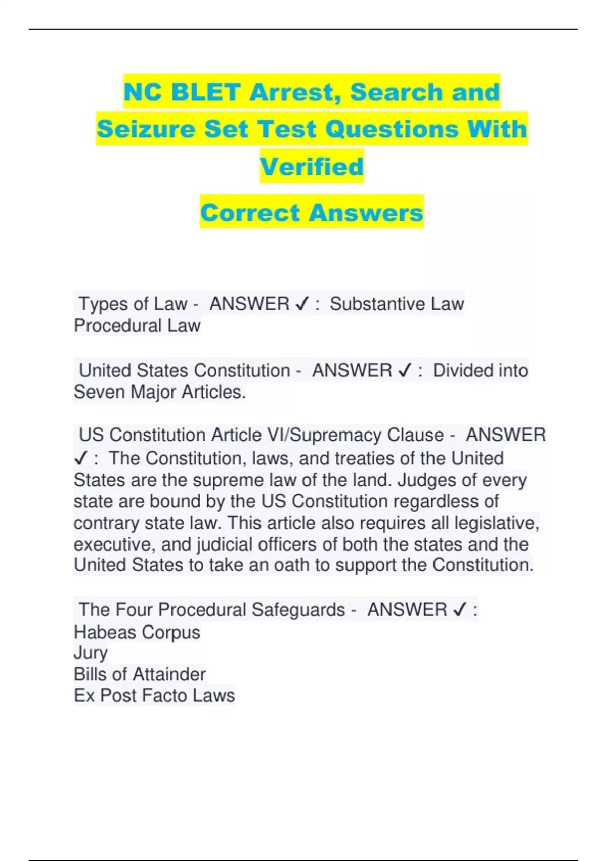 Constitutional Law - ANSWER ✔ : The supreme law of
