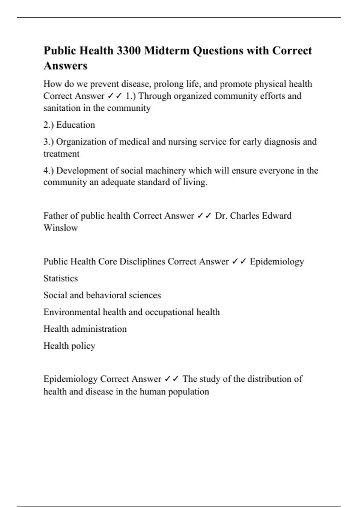 Father of public health Correct Answer ✓✓ Dr. Charles Edward